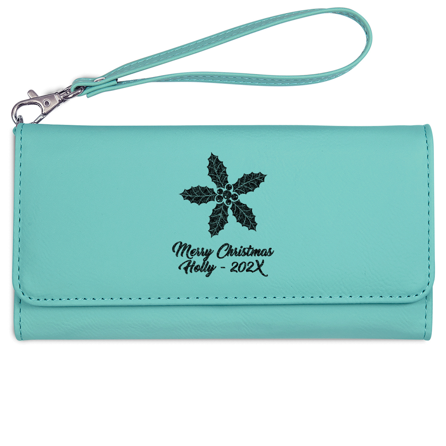 These personalized ladies leather wallets are available in 2 colors - rawhide / cognac and teal.