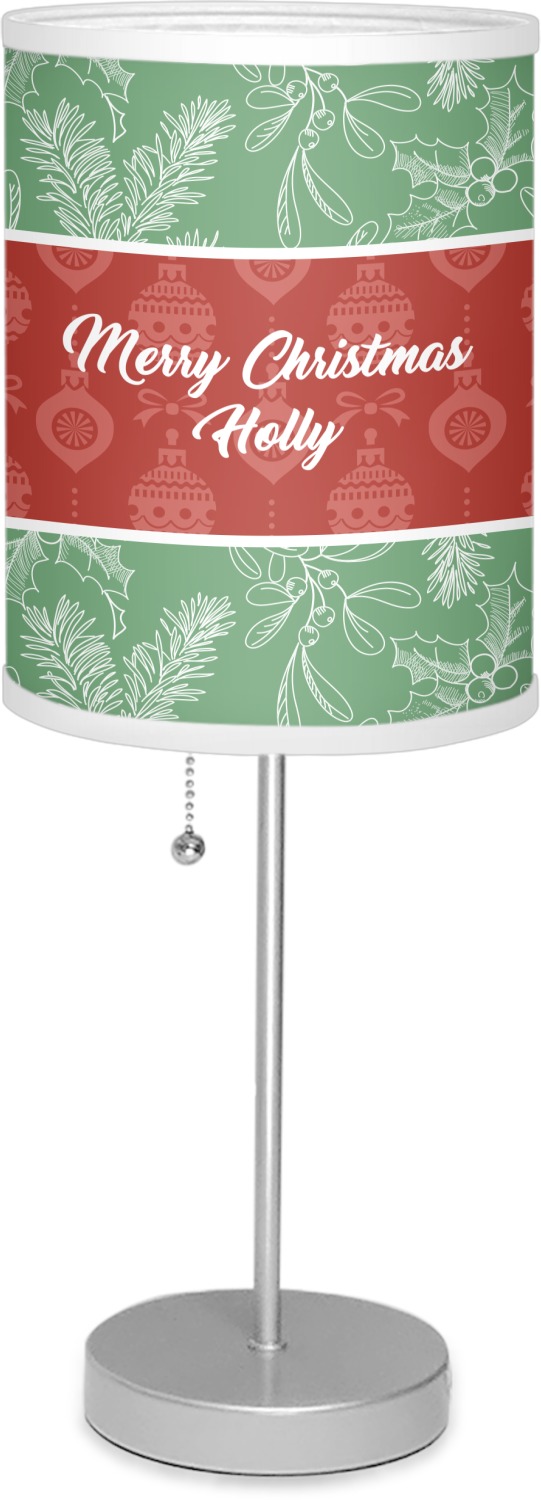 The design is divided into three horizontal parts. The top and bottom are a beautiful green holly background and the middle has a subtle red ornaments background. The middle section is where your personalization goes. This is a great design idea for Christmas decor or Christmas gifts.