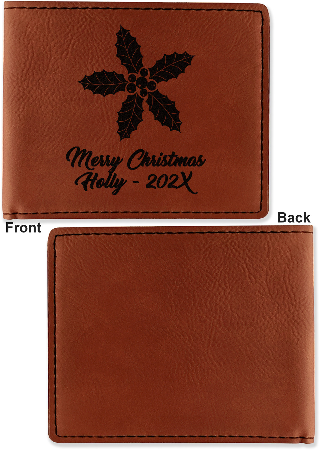 Your bifold wallet will be personalized by laser engraving, which will be a black color on the wallet. Choose a graphic, text, or monogram to personalize your wallet. There are thousands of choices in our design center.