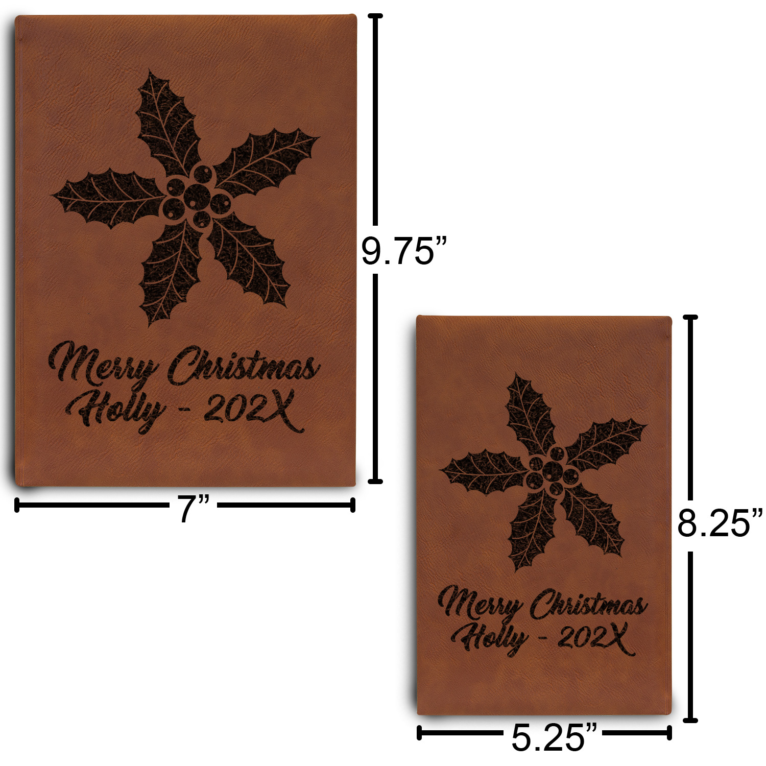 Available in two sizes - small at 8.25" x 5.25" and large at 9.75" x 7", these journal are the ideal size for purses and backpacks alike. Your personalized design is precisely laser engraved onto either the front, or the front and back of your new custom journal.