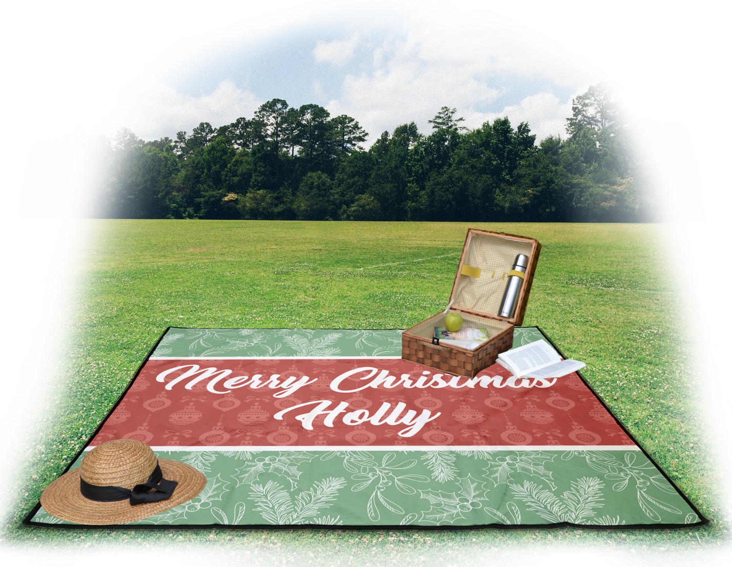 This picnic blanket is perfect for hanging out with your friends at the park or anywhere outside. The top of the blanket is made of a super soft microfiber fleece. The bottom of the blanket is made of a black material similar to a rain jacket and is water repellent as well. This will keep any wet spots on the ground from soaking through your picnic blanket. No one likes a wet blanket. The blanket measures at approximately 50" x 59" and has a nicely finished ribbon edge.