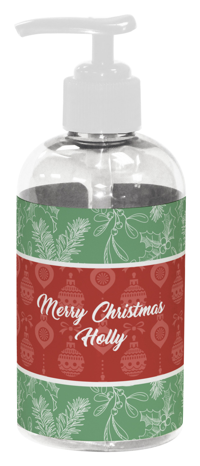 The design is divided into three horizontal parts. The top and bottom are a beautiful green holly background and the middle has a subtle red ornaments background. The middle section is where your personalization goes. This is a great design idea for Christmas decor or Christmas gifts.