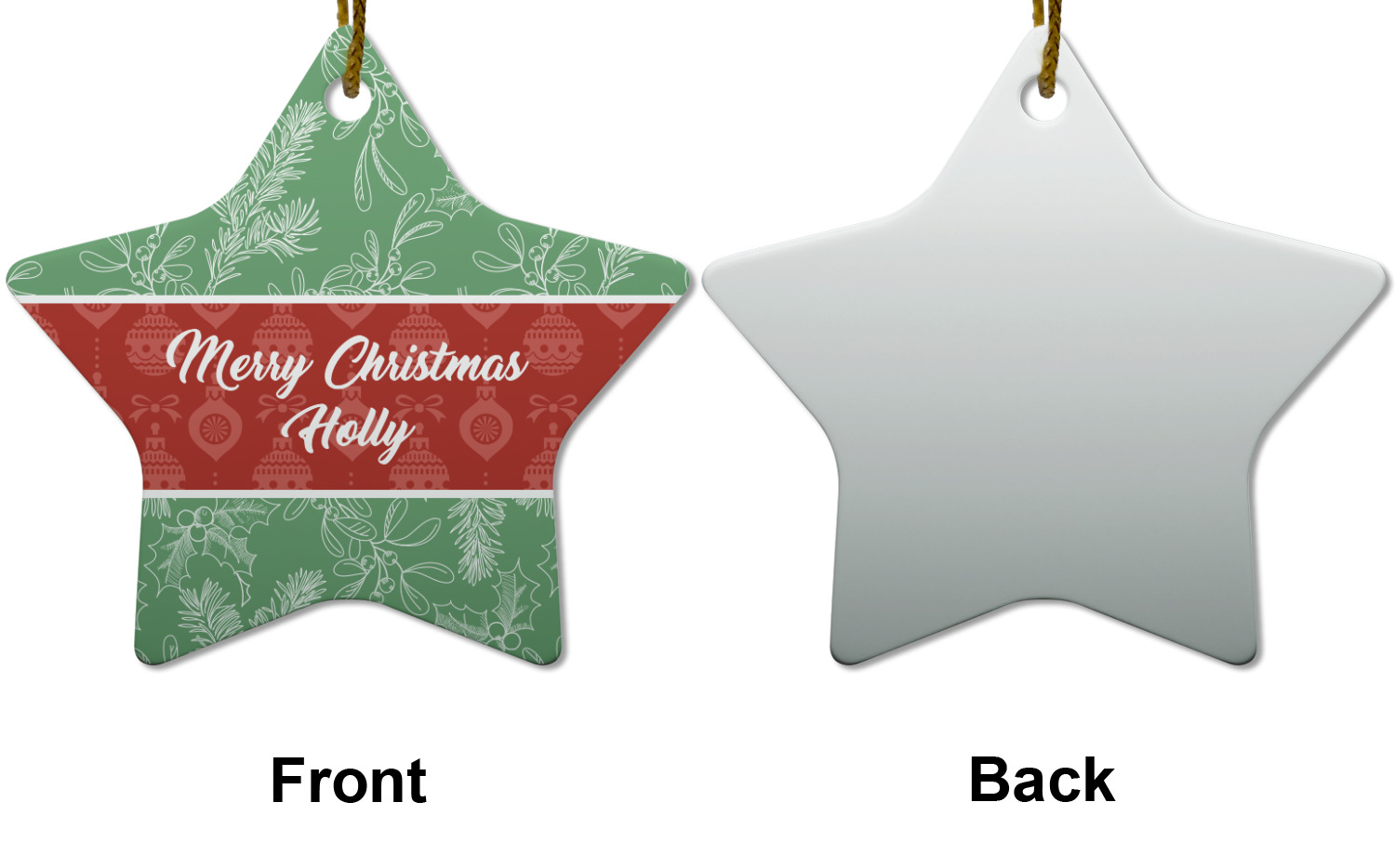 Have a happy holiday and share the joy of Christmas with your loved ones by hanging up personalized ceramic ornaments! Ornaments add a touch of who you are and the things you love onto the Christmas tree! Create custom ornaments for the kids and have them hang up their own star with their name, or pay remembrance this holiday to missed loved ones with our ceramic heart ornament. Browse many of our unique designs and customize them the way you'd like! From monograms, logos, and patterns, we have it all! You can even upload a photo of your family for us to print onto the ornament! The possibilities are endless!