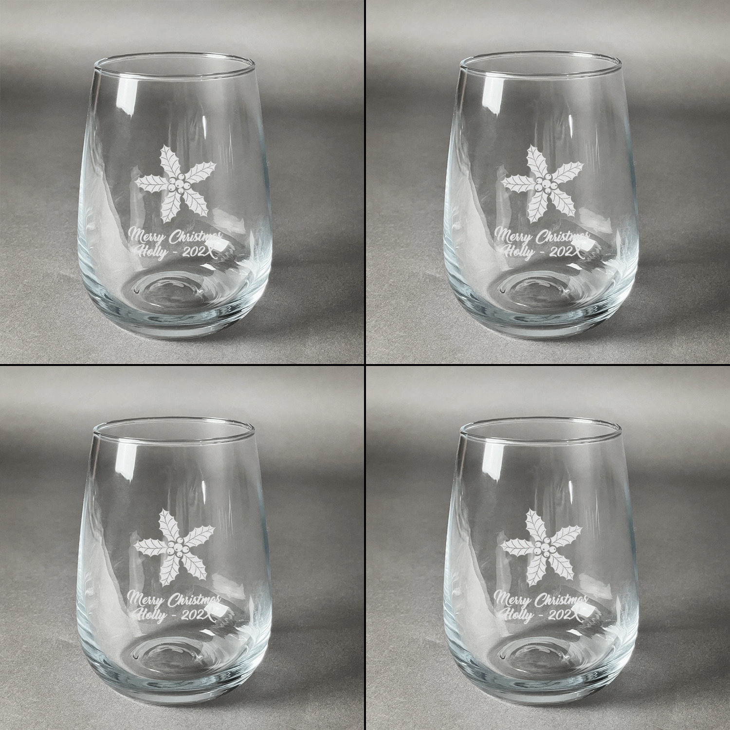 You can have all four glasses engraved with the same design or you can customize and personalize each glass individually - the choice is yours!!