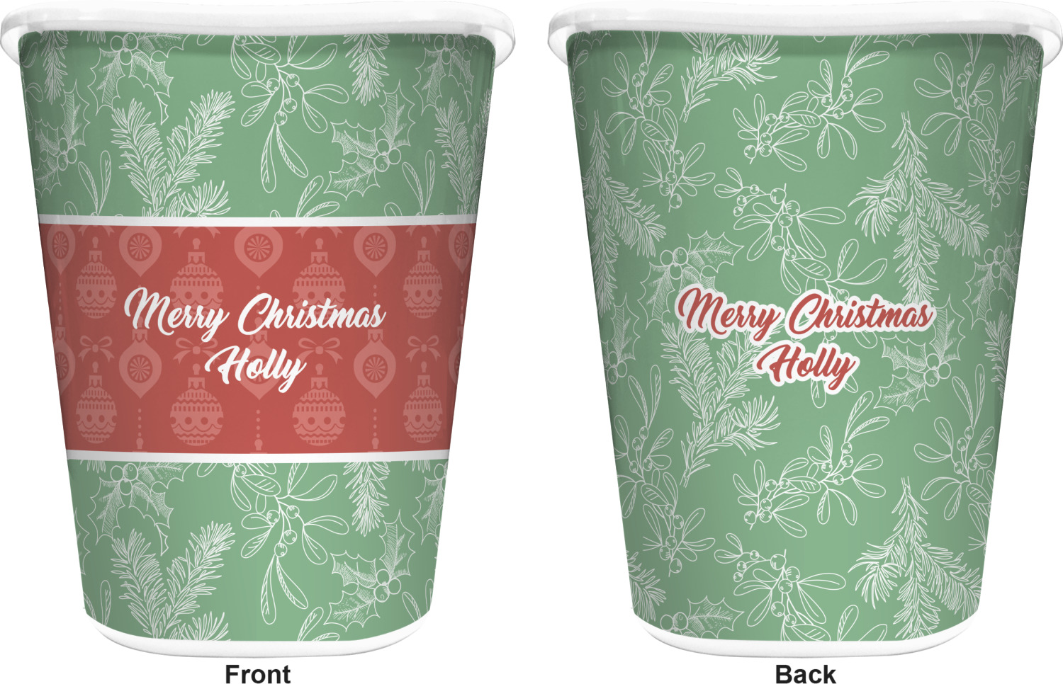 You can choose to purchase these decorative wastebaskets in either a white or a black color that will show on the base and the upper rim. Your customization is printed on a high-gloss, fine-quality vinyl adhesive, and you can choose to either have this adhesive applied to one side only or to both sides. As such, this plastic wastebasket can be single-sided or double-sided, depending on your creative vision. Your customization is printed using durable inks, making the design waterproof and resistant to fading over time.