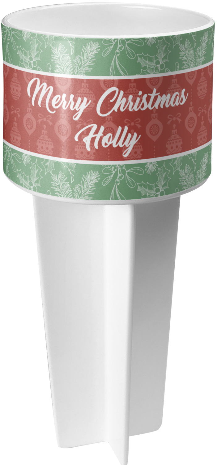 This cup holder has a large stake at its bottom that anchors it to the sand or ground below, while the cup holder rests above the stake. The entire drink holder is made of durable plastic and displays your customization around the cup holder portion. We sell these personalized beach spikers in two different colors: black and white.