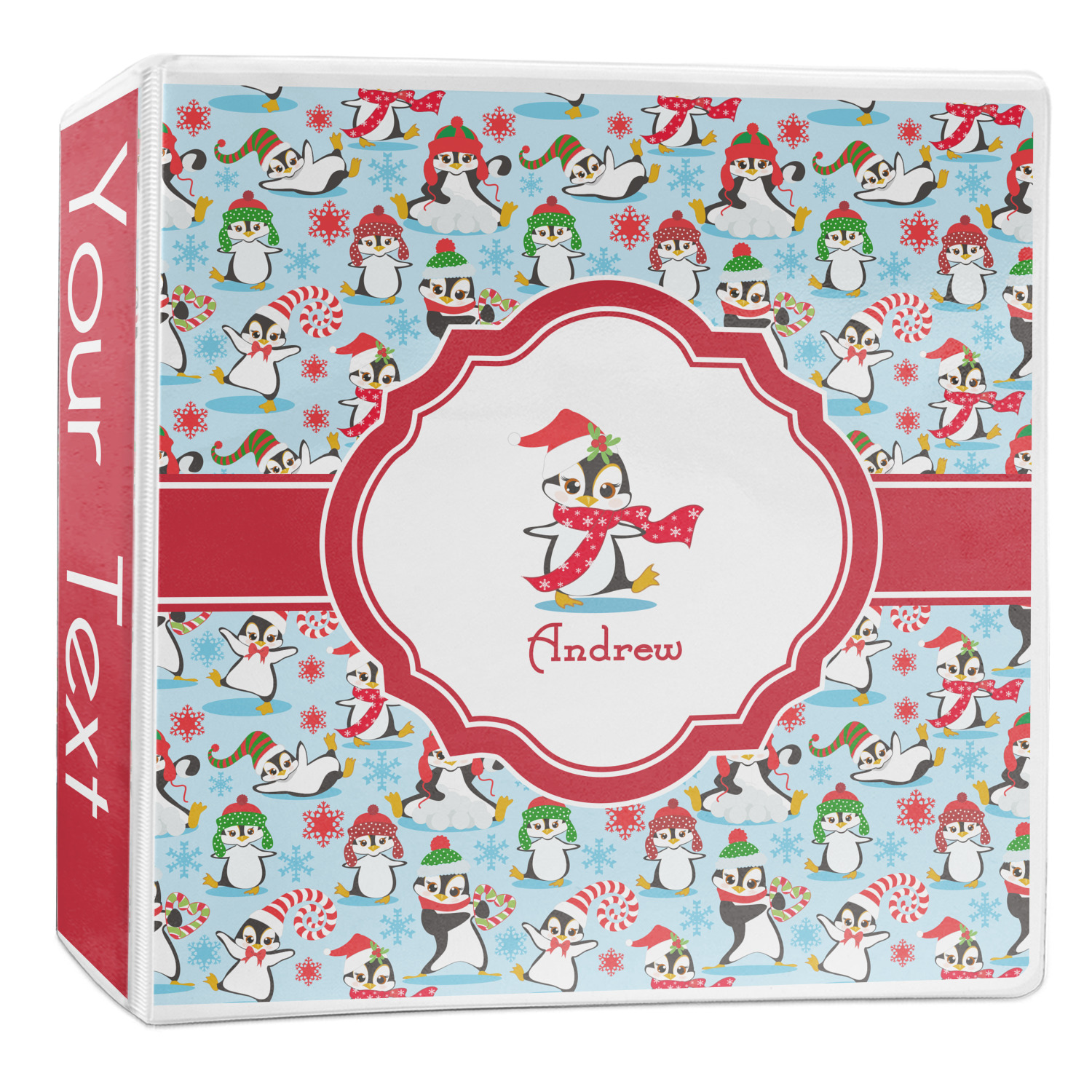 Penguins as Santa's little helpers? Everyone can agree this fun design of penguins clad in Santa hats and having a grand ole time up in the North Pole is absolutely adorable. The ribbon and label are red, and the label includes a little penguin, ready for the holidays, along with your name or text for personalization.