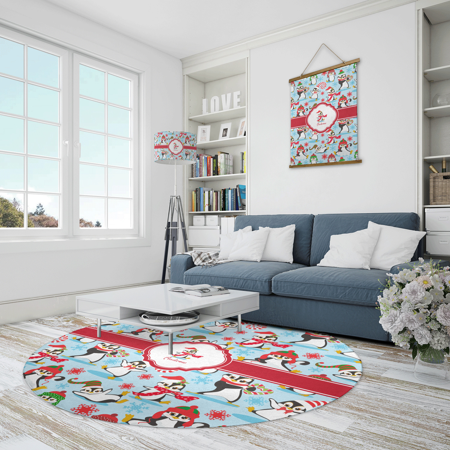 Our custom round area rugs and rectangular area rugs are both velvety soft and smooth, with a short pile, beautiful sewn corners and edges on the poly chenille face. We recommend adding an anti-slip mat under your round area rug to prevent it from sliding when under foot when placed on hard or smooth surfaces.