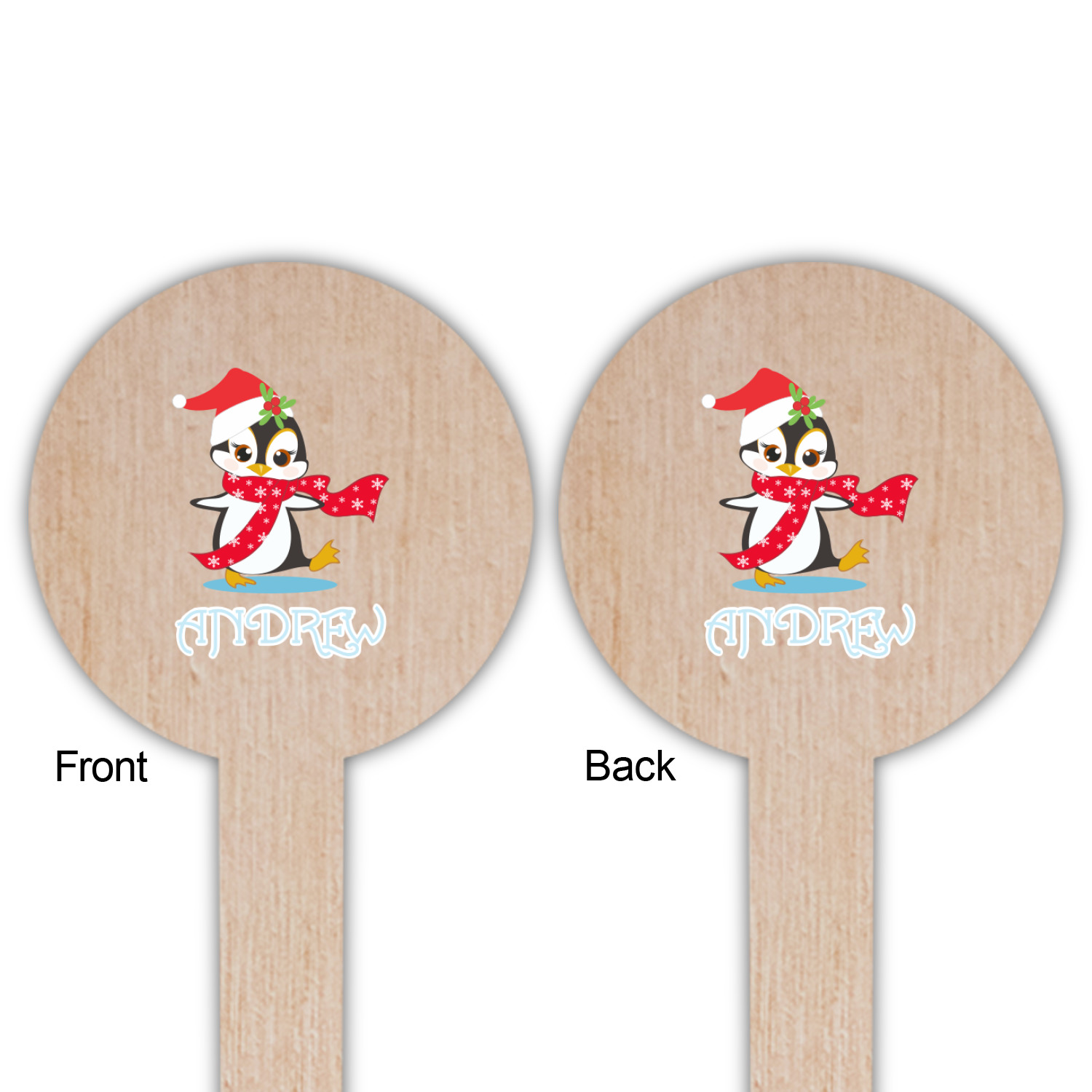 Penguins as Santa's little helpers? Everyone can agree this fun design of penguins clad in Santa hats and having a grand ole time up in the North Pole is absolutely adorable. The ribbon and label are red, and the label includes a little penguin, ready for the holidays, along with your name or text for personalization.