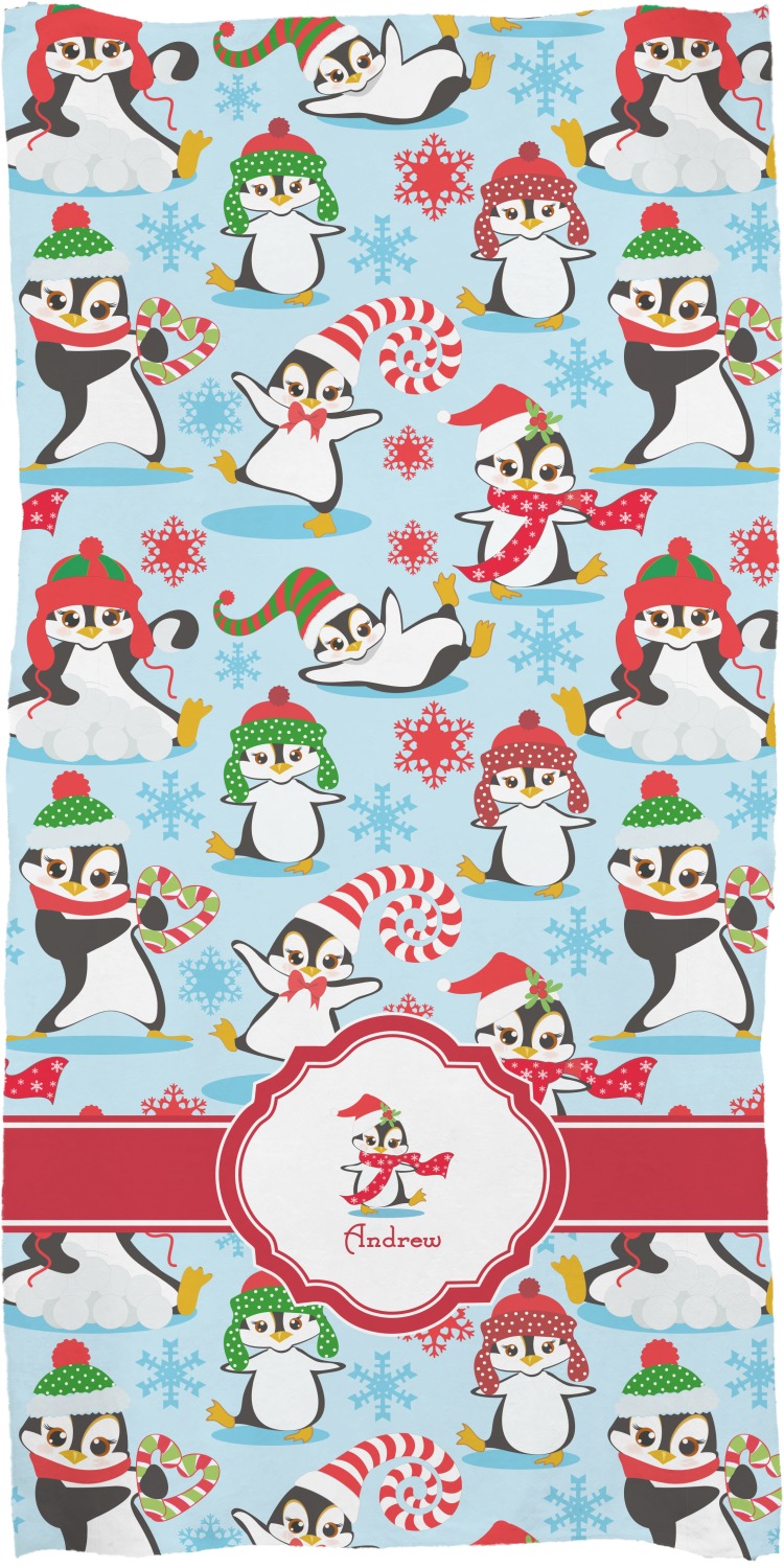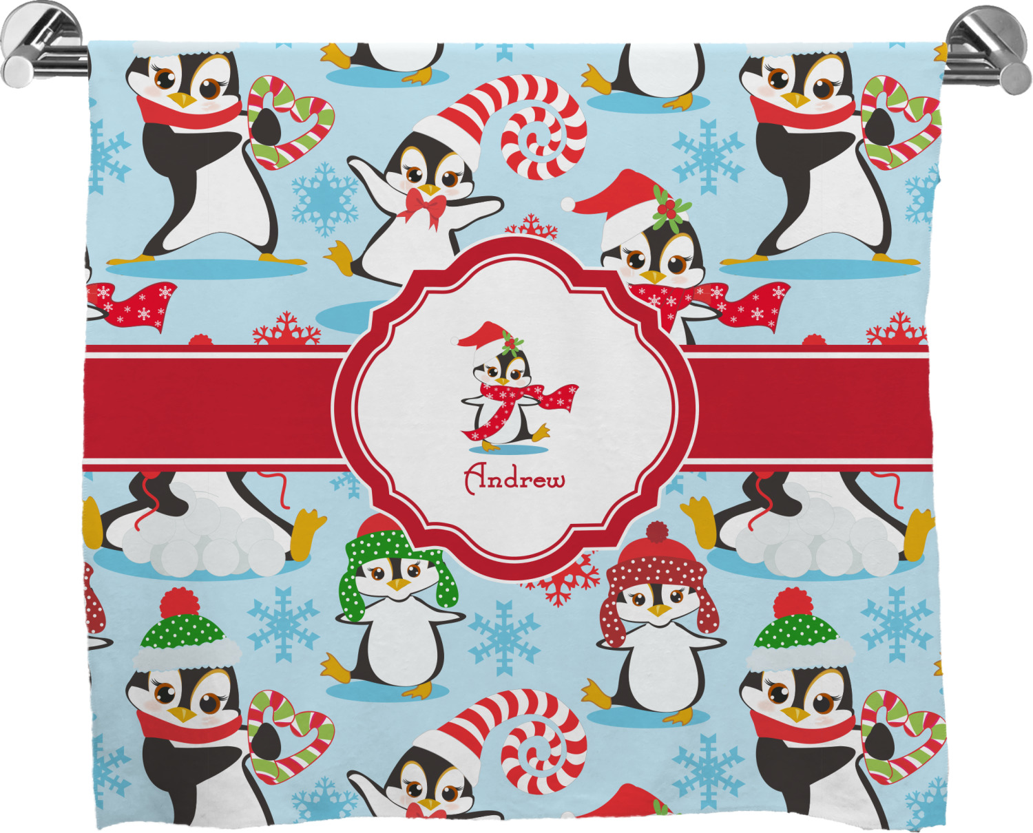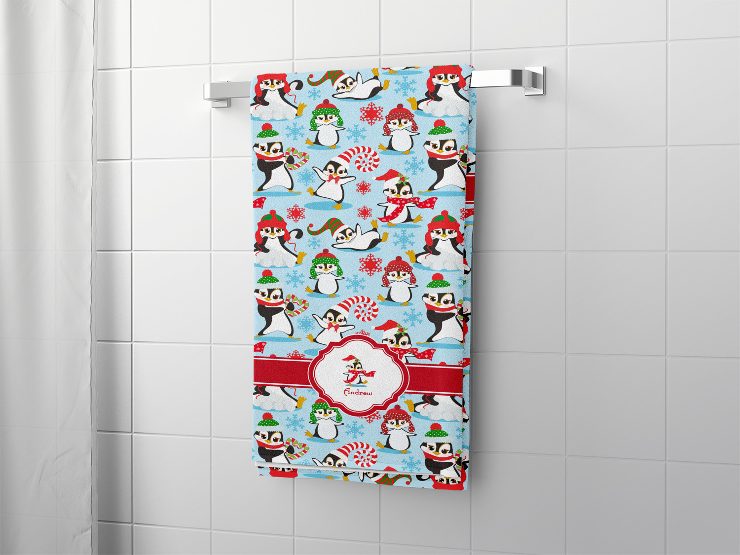 These customized bath towels are slightly larger than your standard towel and are the ideal size for wrapping around your body. They measure approximately 60" x 30". Your customization is displayed across the entire front face of the towel, while the back is white.