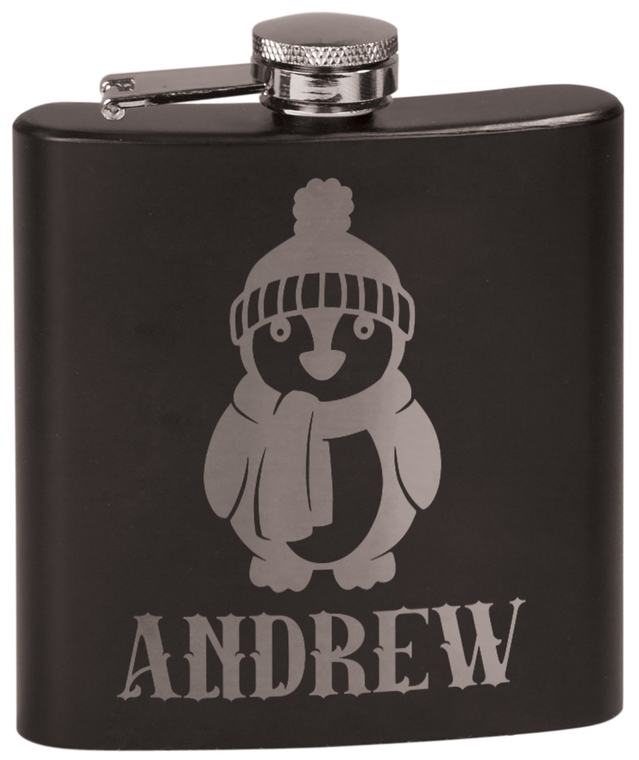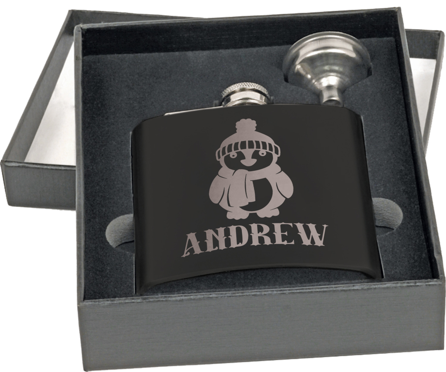 You'll always look classy when drinking when you use our black flask! These personalized flasks have a sleek, black look that will look lovely alongside your other bar-ware and accessories! After you've customized one for yourself, craft one for a friend or loved one!