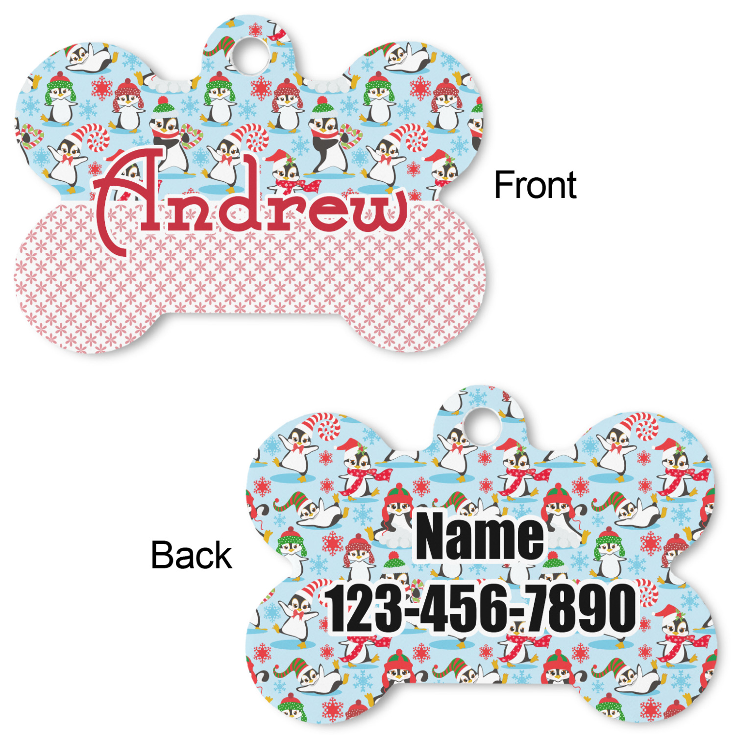 Our default design templates print your dog's personalization on the front and your contact information on the back; however everything is customizable, so you customize the patterns, the colors, the personalization, the contact information etc.
