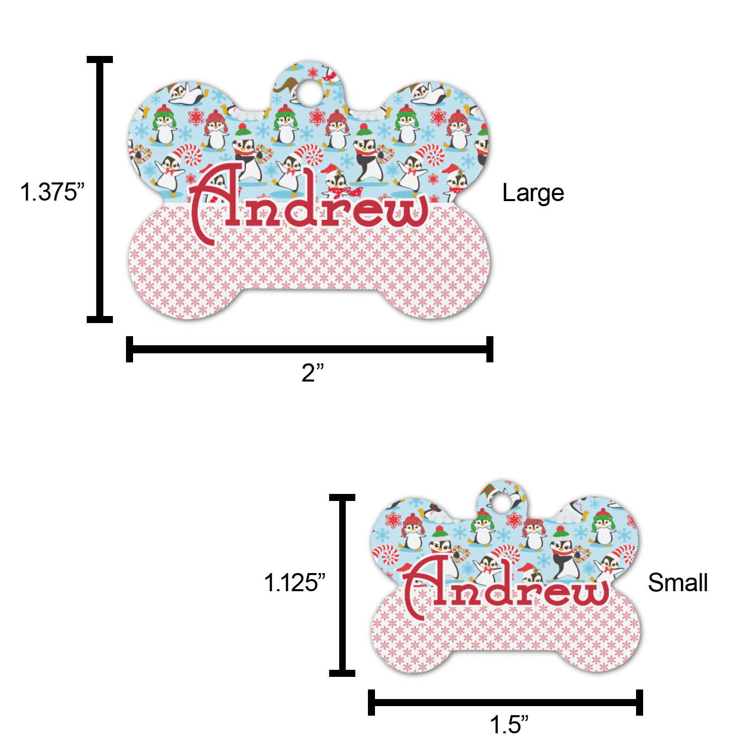 The small bone dog tag size is perfect to pair with our small dog collars, the large size pairs well with our large dog collars.