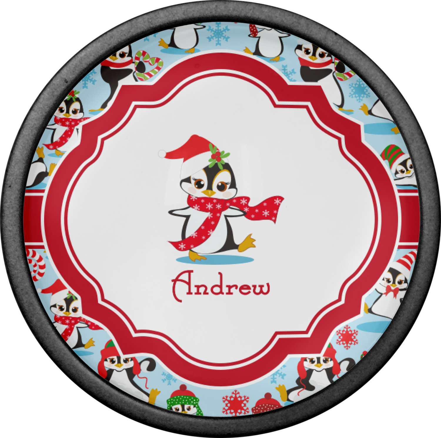 Penguins as Santa's little helpers? Everyone can agree this fun design of penguins clad in Santa hats and having a grand ole time up in the North Pole is absolutely adorable. The ribbon and label are red, and the label includes a little penguin, ready for the holidays, along with your name or text for personalization.