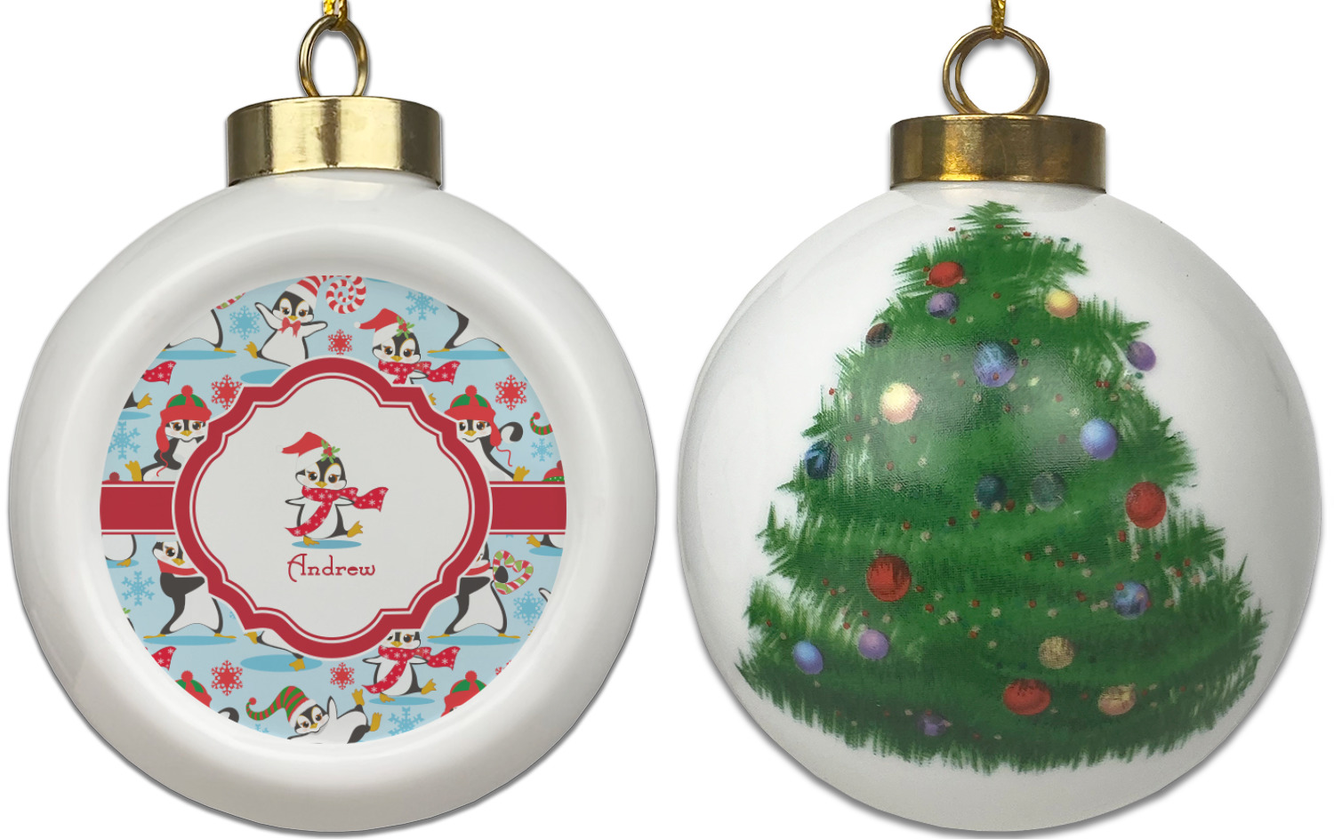 Our Christmas ornaments are a unique ceramic ball shape with a twist as it has a flat face to display your custom design! Select from one of our two design types - Christmas Tree or Poinsettia Garland - to adorn the curved back of your personal design. Each ornament measures 3H x 2.5W x 2D accompanied with a gold string accent for finishing touches to hang on your beautiful Christmas tree!