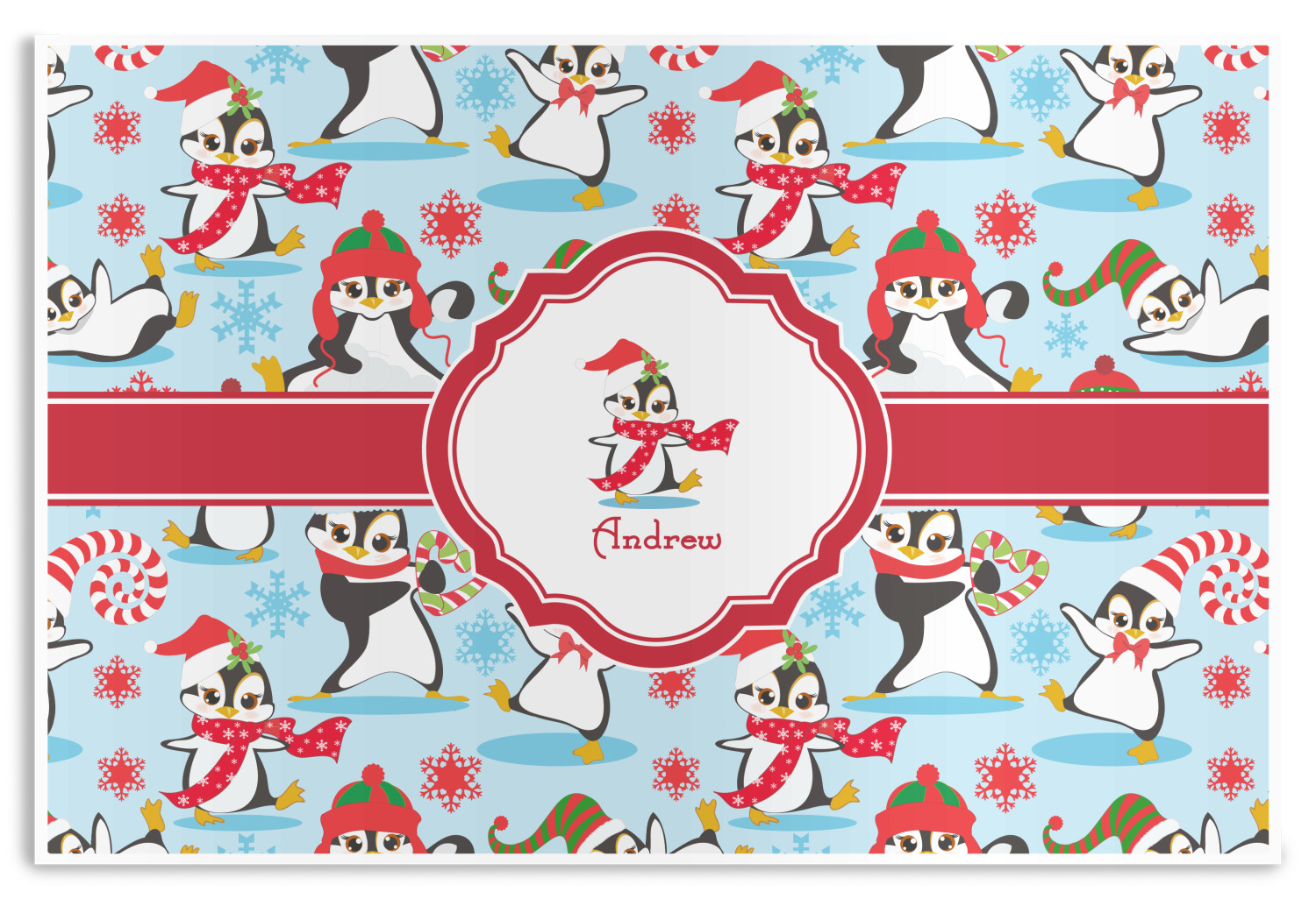 Penguins as Santa's little helpers? Everyone can agree this fun design of penguins clad in Santa hats and having a grand ole time up in the North Pole is absolutely adorable. The ribbon and label are red, and the label includes a little penguin, ready for the holidays, along with your name or text for personalization.