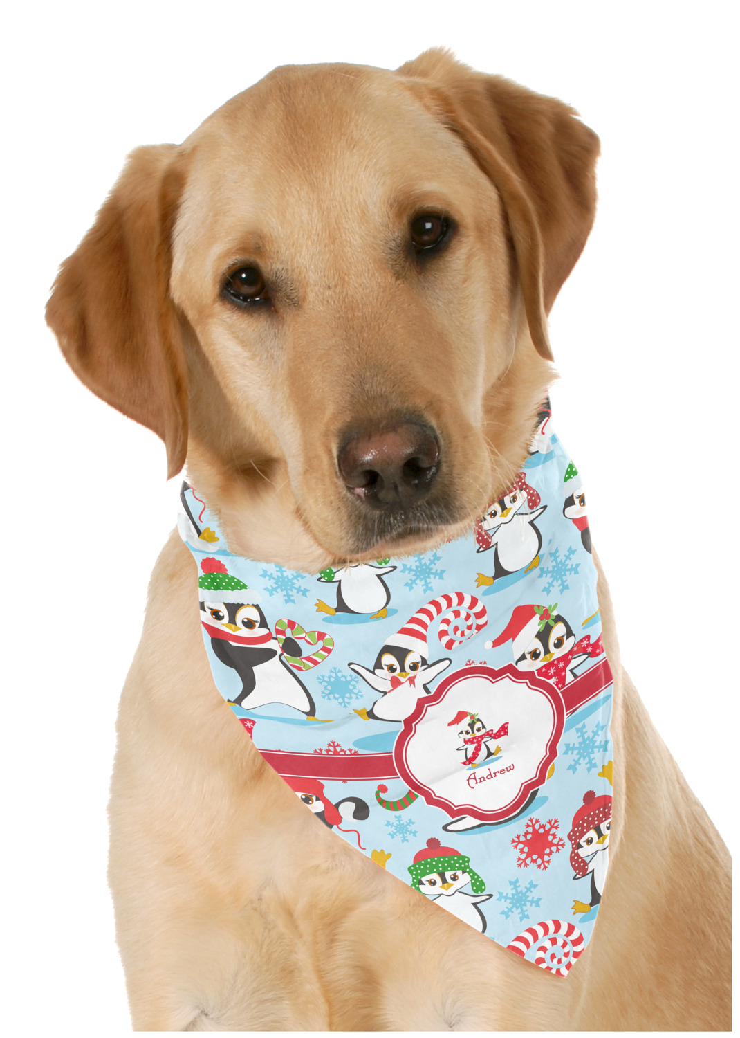 This beautiful pet bandana really is the perfect accessory. It is made from a silky feeling polyester and measures at approximately 23" x 23". Your personalization will be printed on a diagonal, so that you are able to read the personalization when folded into a triangle. This bandana fits best on large dogs, but can be folded smaller if there is no personalized text to fit smaller pets.