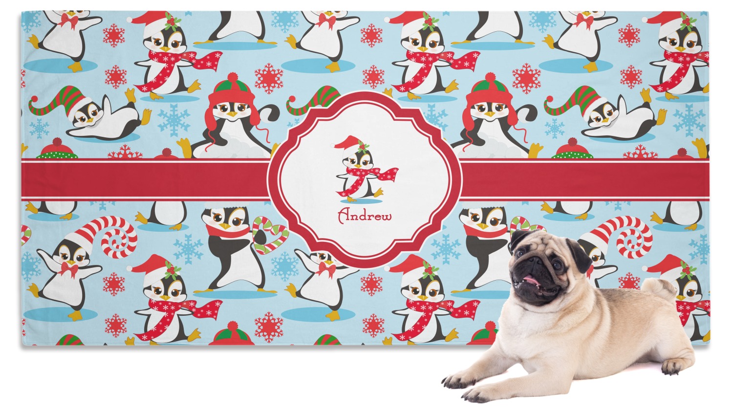 Our custom towels are crafted from a special blend of polyester and polyamide, which contributes to its lightweight, yet thoroughly absorbent nature. We craft it as such to guarantee efficiency as a convenient product; its lightweight nature makes it easy to roll up and carry along, yet it is still able to dry off even the wettest, muddiest pet. It measures at 60" x 30" and is sizable enough to dry off even the largest of pets. With our towel's gentle, soft-to-the-touch material, your pet will be sure to anticipate its warm, dry embrace. We print your personalized design on the front of the towel, while the back is white.