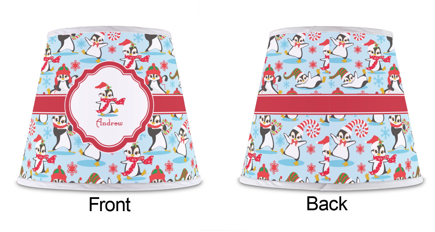 The base of this lampshade is 12 inches in diameter, and the top spans 8 inches in diameter. The total height of the lampshade is 10 inches. The angled nature of this custom lampshade concentrates the light, making it ideal for smaller spaces. This lampshade is made of matte, polyfilm, and displays your customization in its middle. The top and bottom of this colorful lamp shade are lined with a white fabric ribbon (which can be replaced with black inside the design studio) which frames your design and creates a sophisticated finish. As an UNO fitter lampshade, this unique lamp shade will fit a variety of bases.
