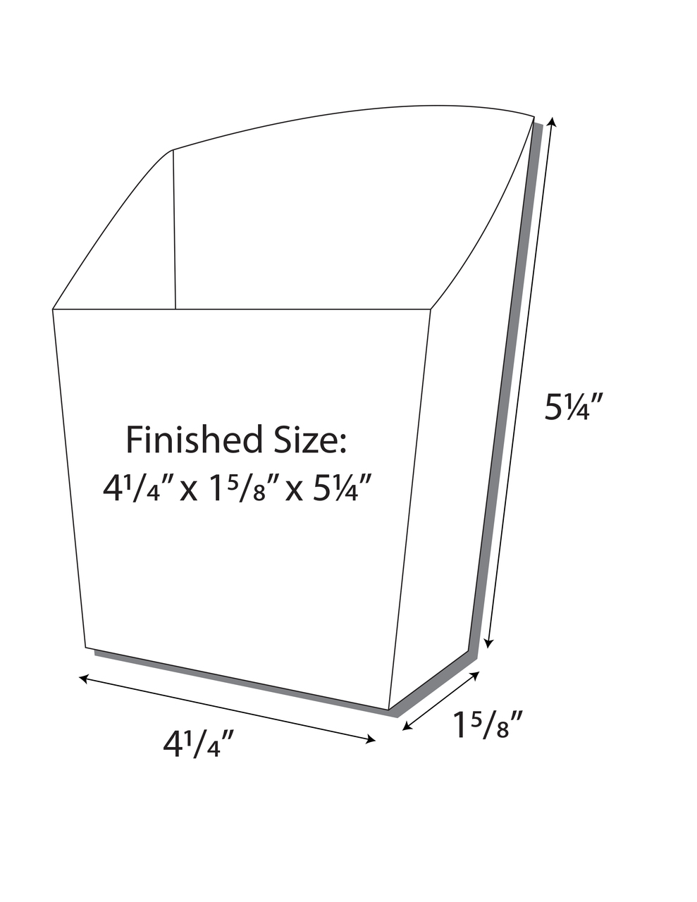 These french fry favor boxes are a pretty good size i.e. 5.25" tall x 4.25" wide x 1..625" deep. If you are not good with dimensions - it easily fits 2 full size Twix bars, or it is the size of McDonald's large fries.