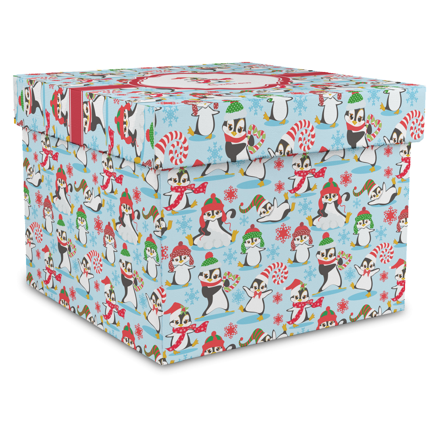 Penguins as Santa's little helpers? Everyone can agree this fun design of penguins clad in Santa hats and having a grand ole time up in the North Pole is absolutely adorable. The ribbon and label are red, and the label includes a little penguin, ready for the holidays, along with your name or text for personalization.