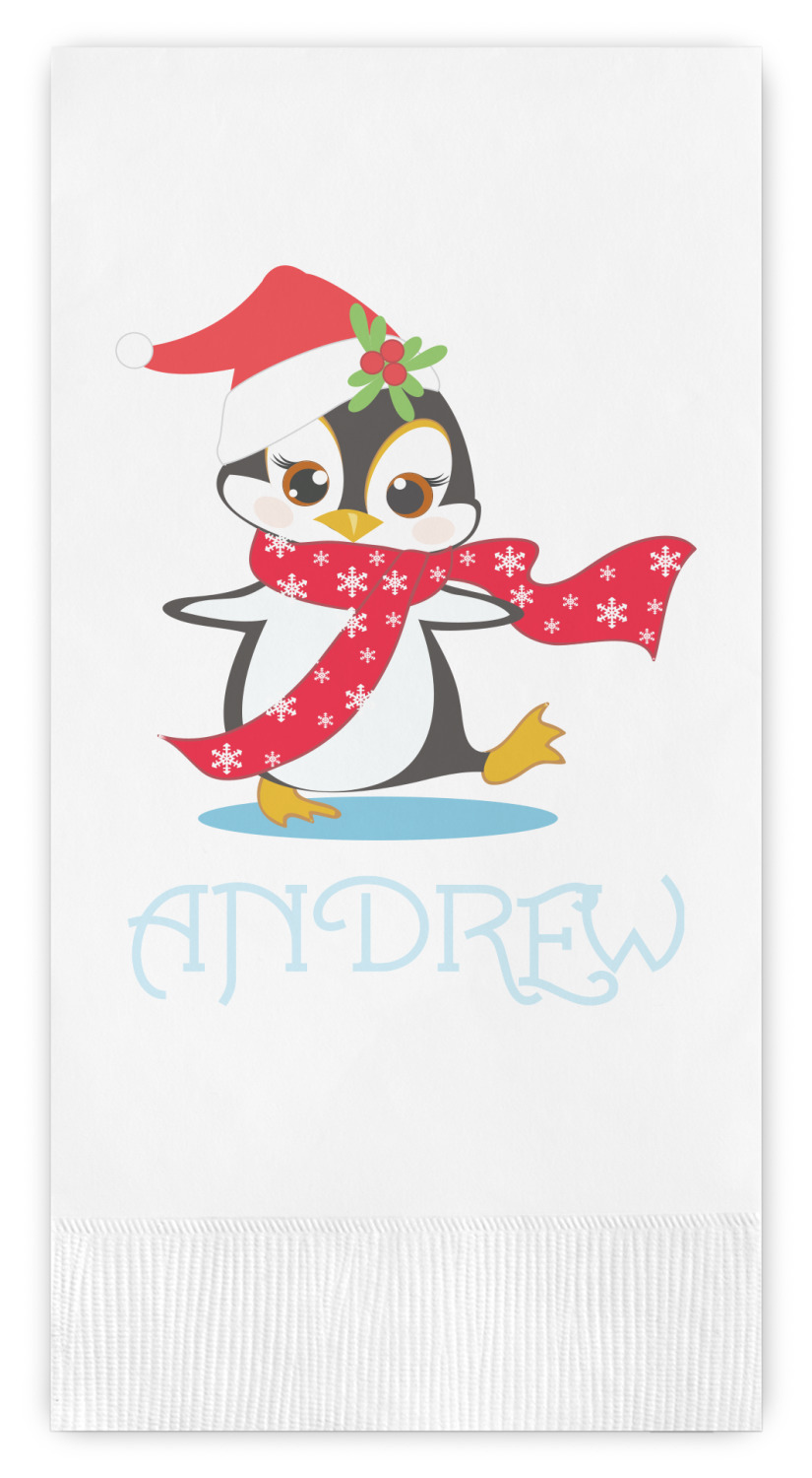 Penguins as Santa's little helpers? Everyone can agree this fun design of penguins clad in Santa hats and having a grand ole time up in the North Pole is absolutely adorable. The ribbon and label are red, and the label includes a little penguin, ready for the holidays, along with your name or text for personalization.
