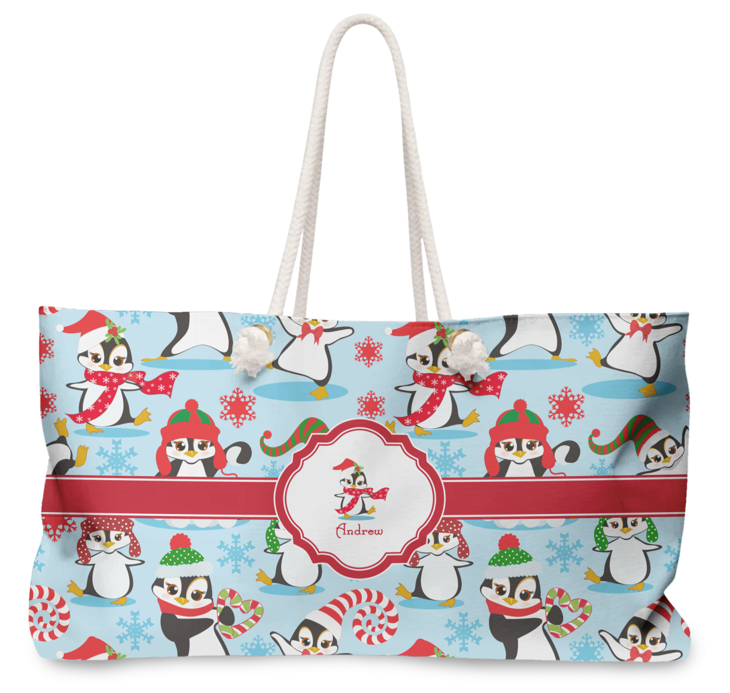 Our oversized weekender tote with rope handles is perfect for your weekend at the beach or on the town. This large tote are 24" W X 13" H, with a 5" gusset and a 27" thick rope handles with a knot that is put through a grommeted brass hole.