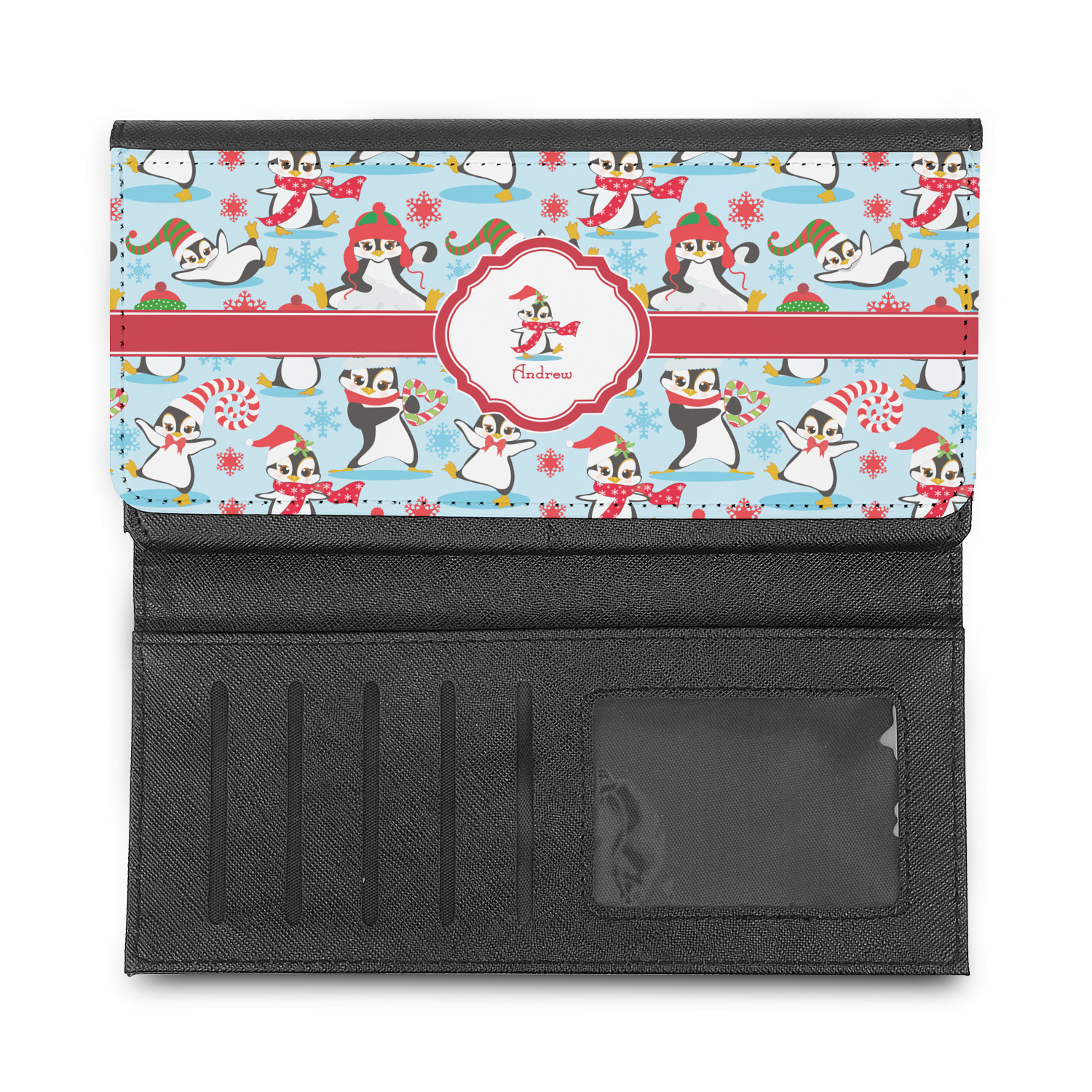 These beautiful wallets are a trifold design. The wallet is made of textured leatherette. The front section has a secure magnetic snap. The front flap is personalized with the artwork of your choice to make this wallet uniquely yours.