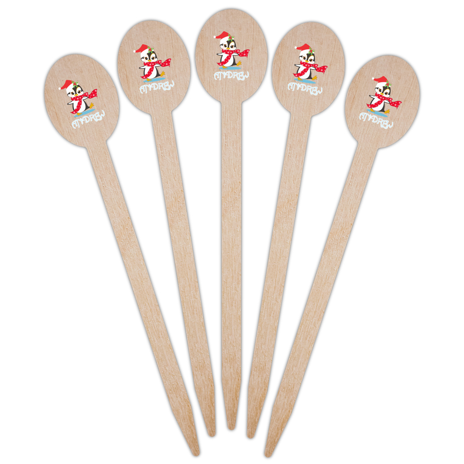 Penguins as Santa's little helpers? Everyone can agree this fun design of penguins clad in Santa hats and having a grand ole time up in the North Pole is absolutely adorable. The ribbon and label are red, and the label includes a little penguin, ready for the holidays, along with your name or text for personalization.