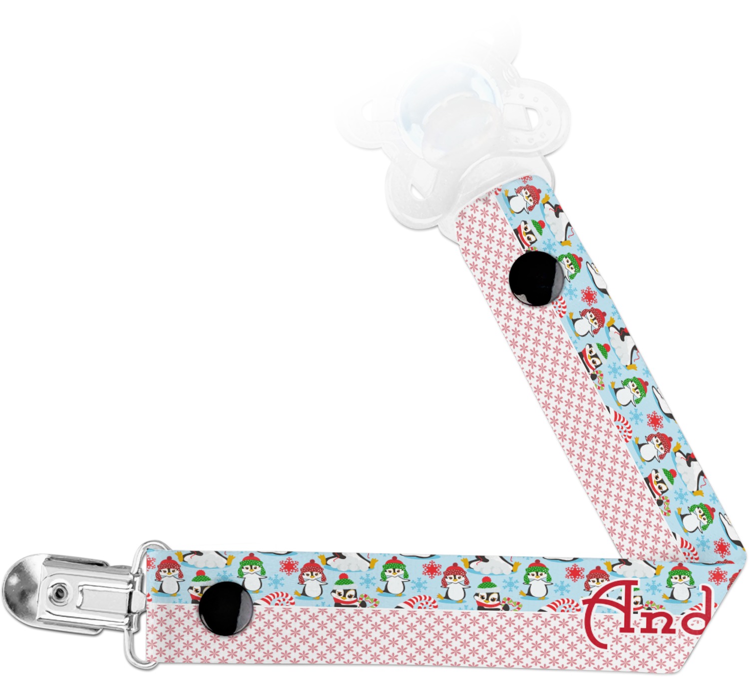 This personalized pacifier clip is the ideal size and measures at approximately 7.5 inches in length, when either end is snapped closed. On one end, you'll find a snap button. This button of your baby's pacifier holder is what can be attached to their pacifier to hold is securely in place. Simply open the snap, slip it through the pacifier opening, and snap it back into place. On the opposite end of this baby pacifier holder, you'll find a metal clip that can secure to a baby's collar or sleeve. This clip ensures that the strap stays in place, and that your baby's pacifier is always on hand.