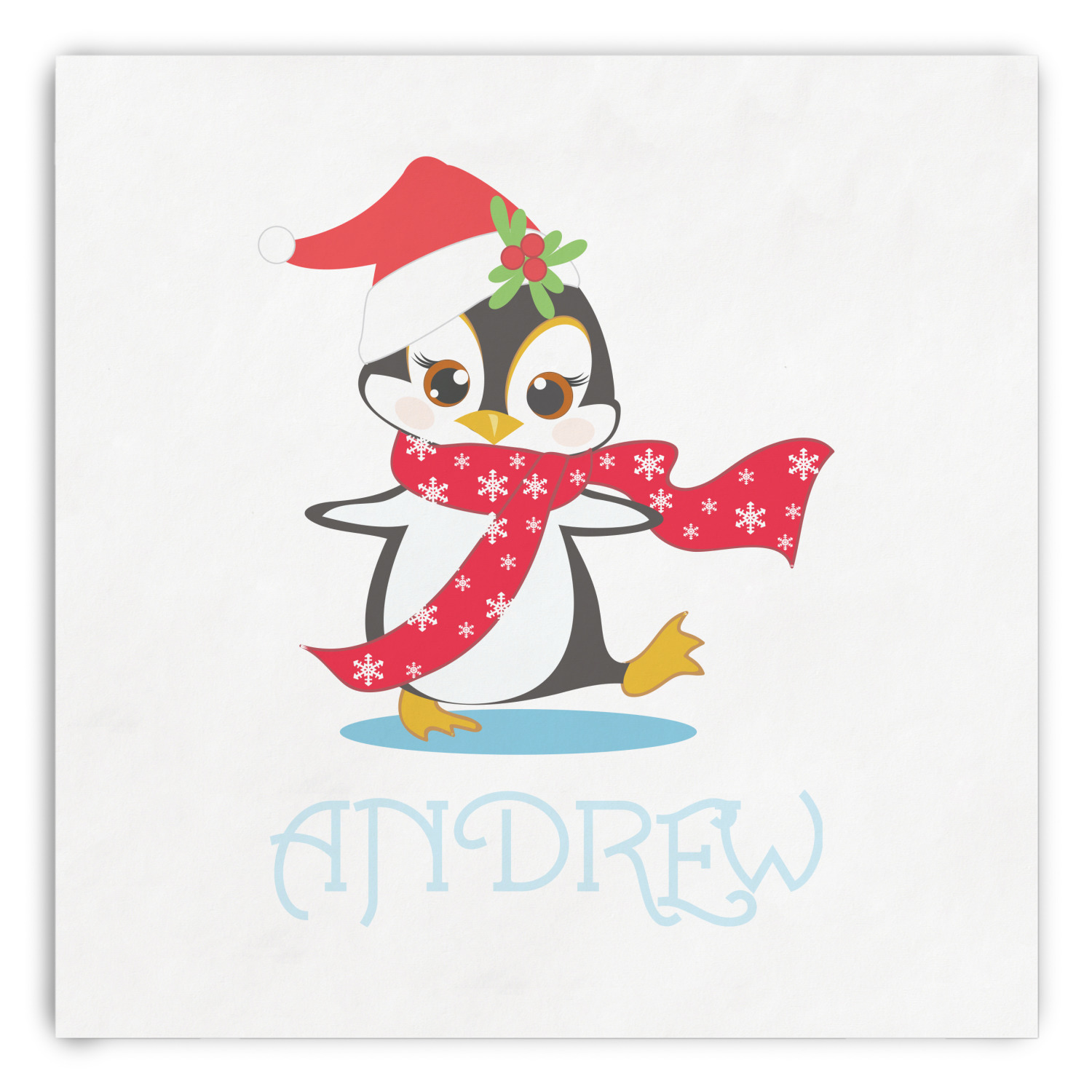 Penguins as Santa's little helpers? Everyone can agree this fun design of penguins clad in Santa hats and having a grand ole time up in the North Pole is absolutely adorable. The ribbon and label are red, and the label includes a little penguin, ready for the holidays, along with your name or text for personalization.