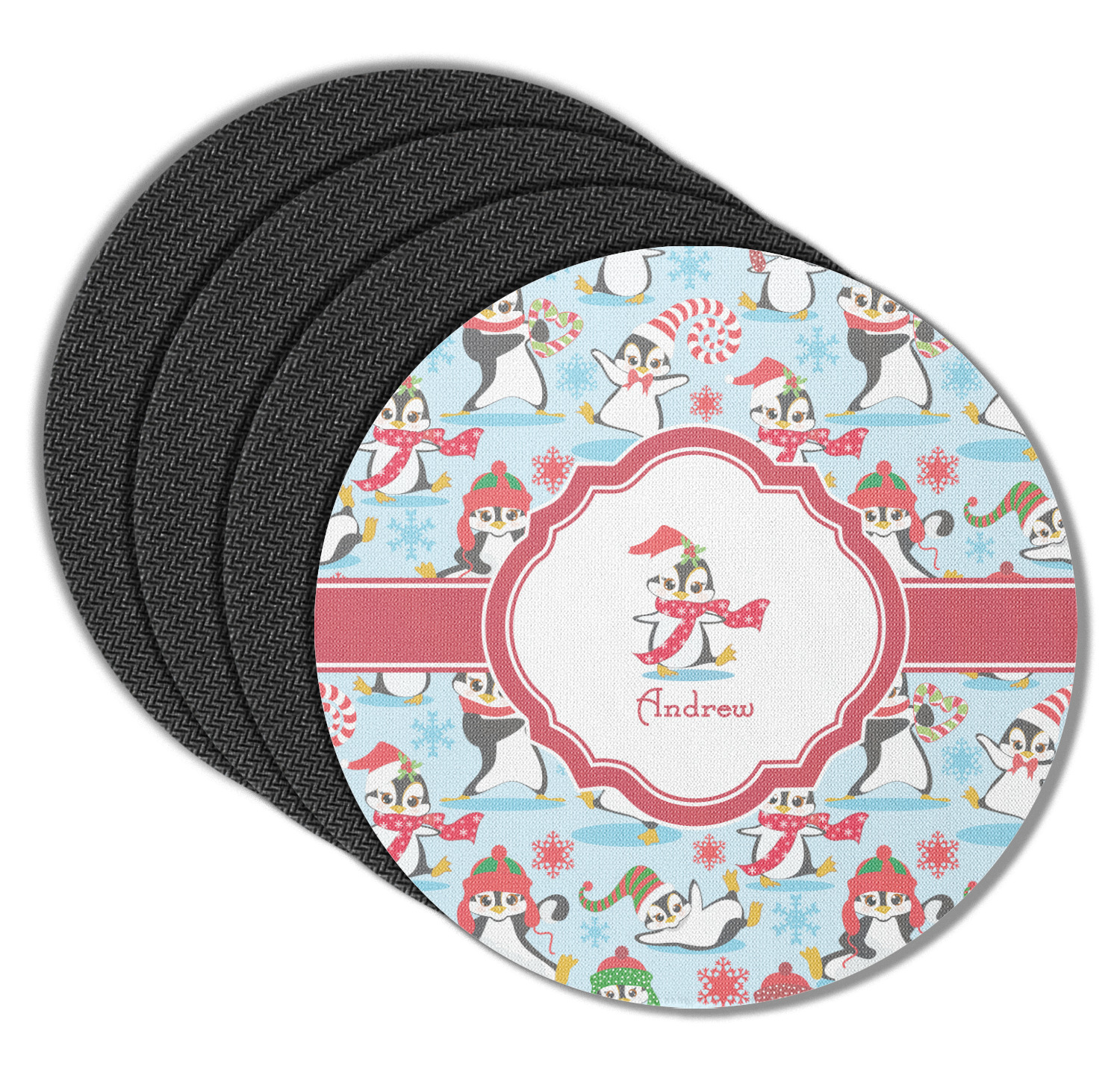 These drink coasters have a smooth, polyester top and a textured, rubber backing on its bottom. The non-slip rubber backing underneath works to keep any spills at bay. At 4 by 4 by 0.25 inches thick, these custom coasters are a suitable size for most drinkware. Your personalization is displayed atop the face of the cup coaster. We sell these rubber coasters in two different shapes: square and round. You can buy each shape as singulars or as a set of 4.