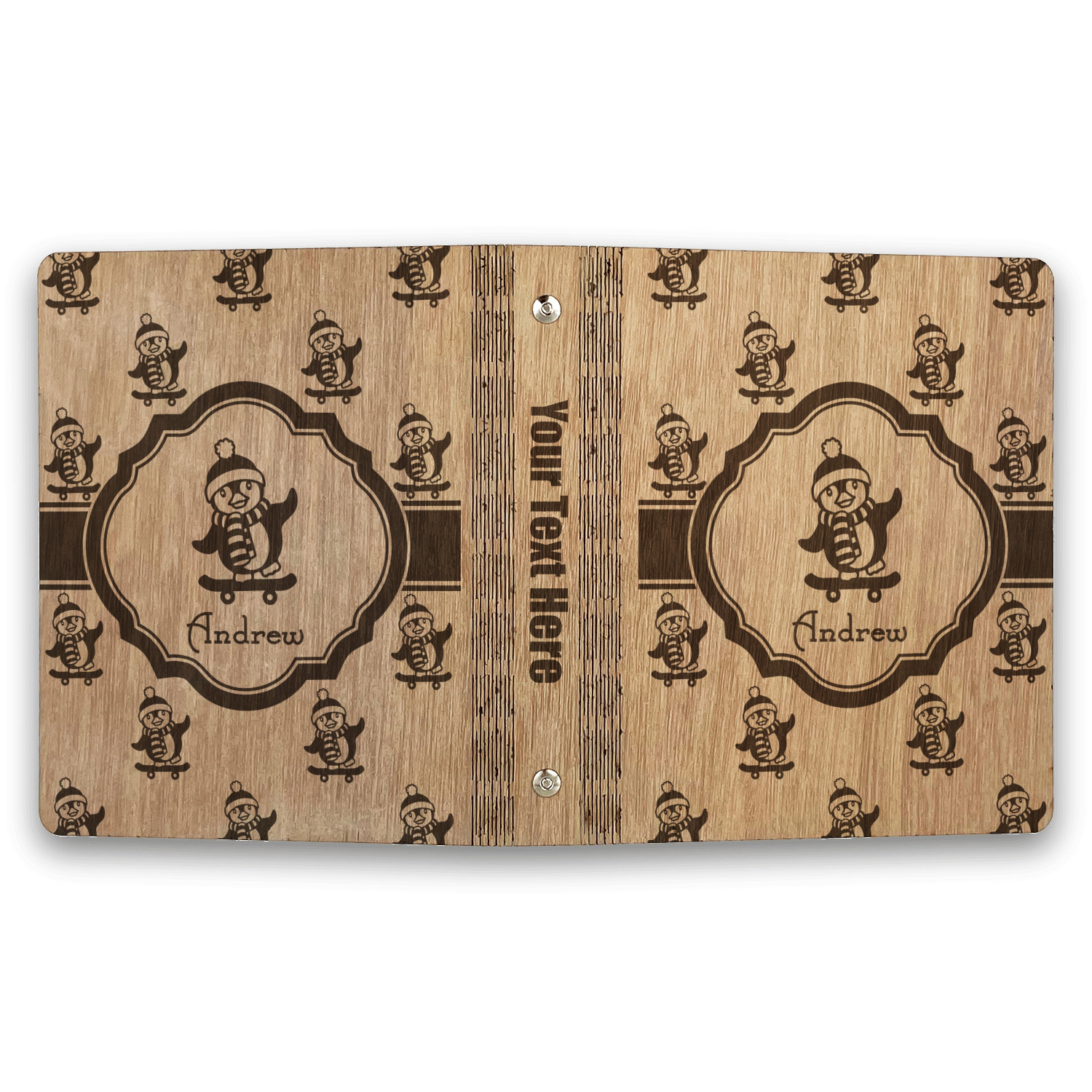 Made from premium hardwood, these are laser engraved then polished with wax to give a nice sheen and smooth feel to the product. The inside of the binders are finished with a faux leather material which is bonded to the inside of the wood to strengthen the wood and give the inside the same refined finish. The rustic brown and gold leather material adds a nice classic touch to the binders.