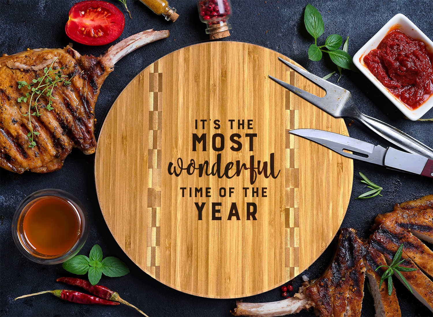 With the laser engraving the cutting board can be customized for that special personal touch. Great for cutting, chopping and dicing - this butcher block is a do it all kitchen tool anyone would love to have. The 11.5" diameter makes it a great size for cutting meats, cheese, fruits and vegetables. A quick hand wash and it is ready to use again.