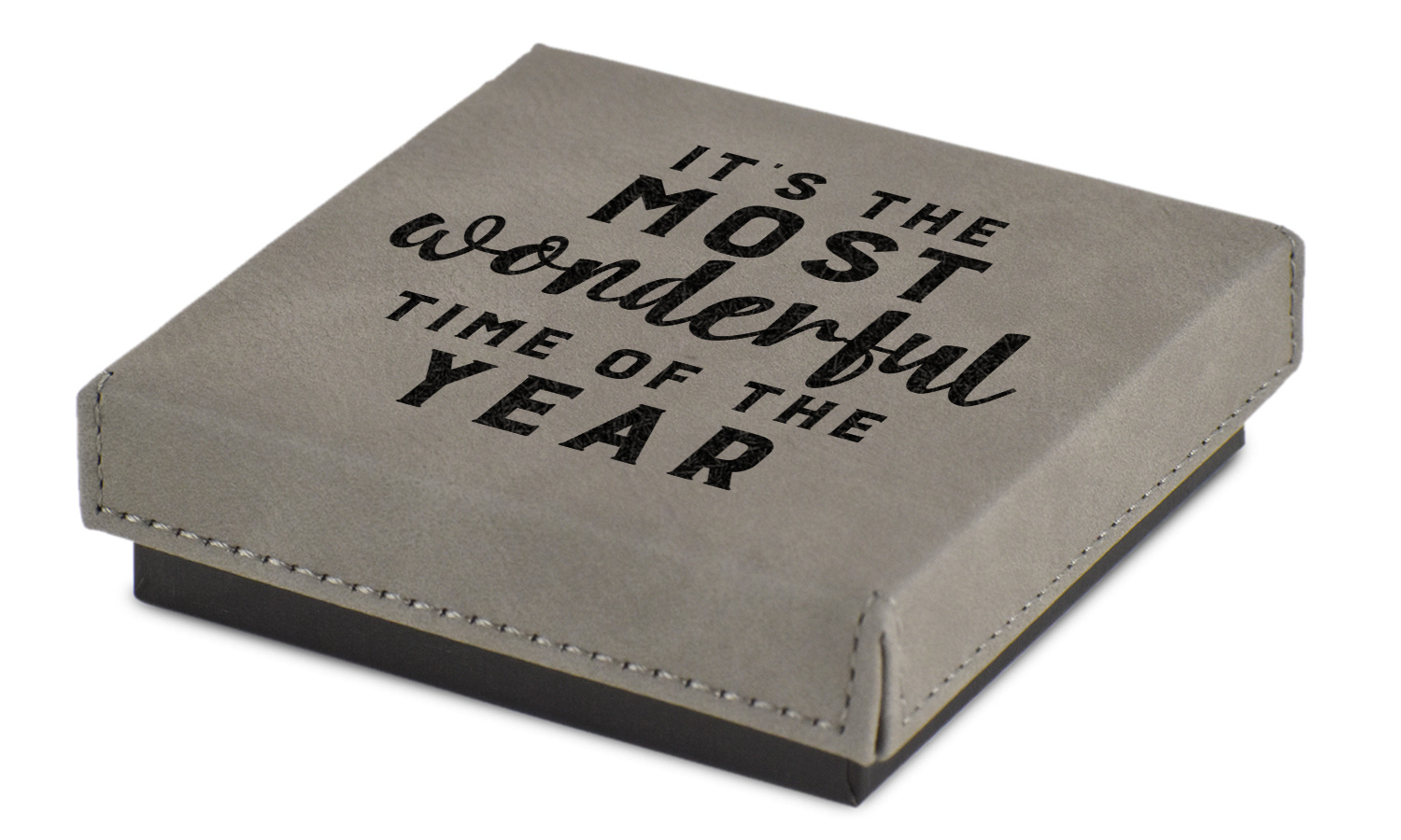 This jewelry gift box measures 3.5 inches long by 3.5 inches wide, and 1 inch deep. The box fits different sized jewelry items such as bracelets, necklaces, watches, earrings, rings and more. Engraved with a laser this high quality paper board and faux leather jewelry gift box is unique and makes any gift stand out.