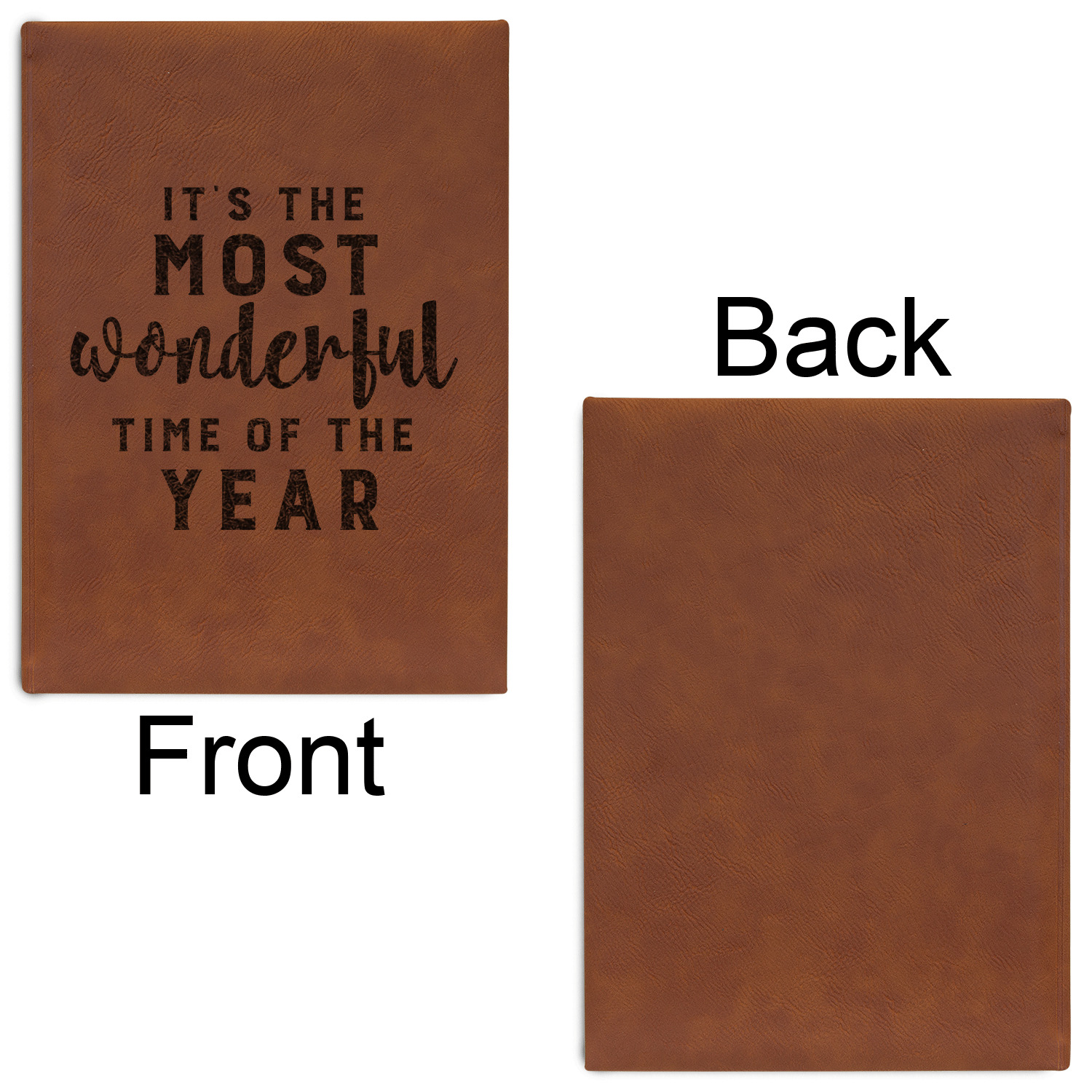 The faux leather covers are a rich cognac / rawhide color and can be customized with your design. From a simple name or monogram or a logo to a detailed mandala - the choice for customization & personalization is truly yours. Customize one of our designs or upload your own.