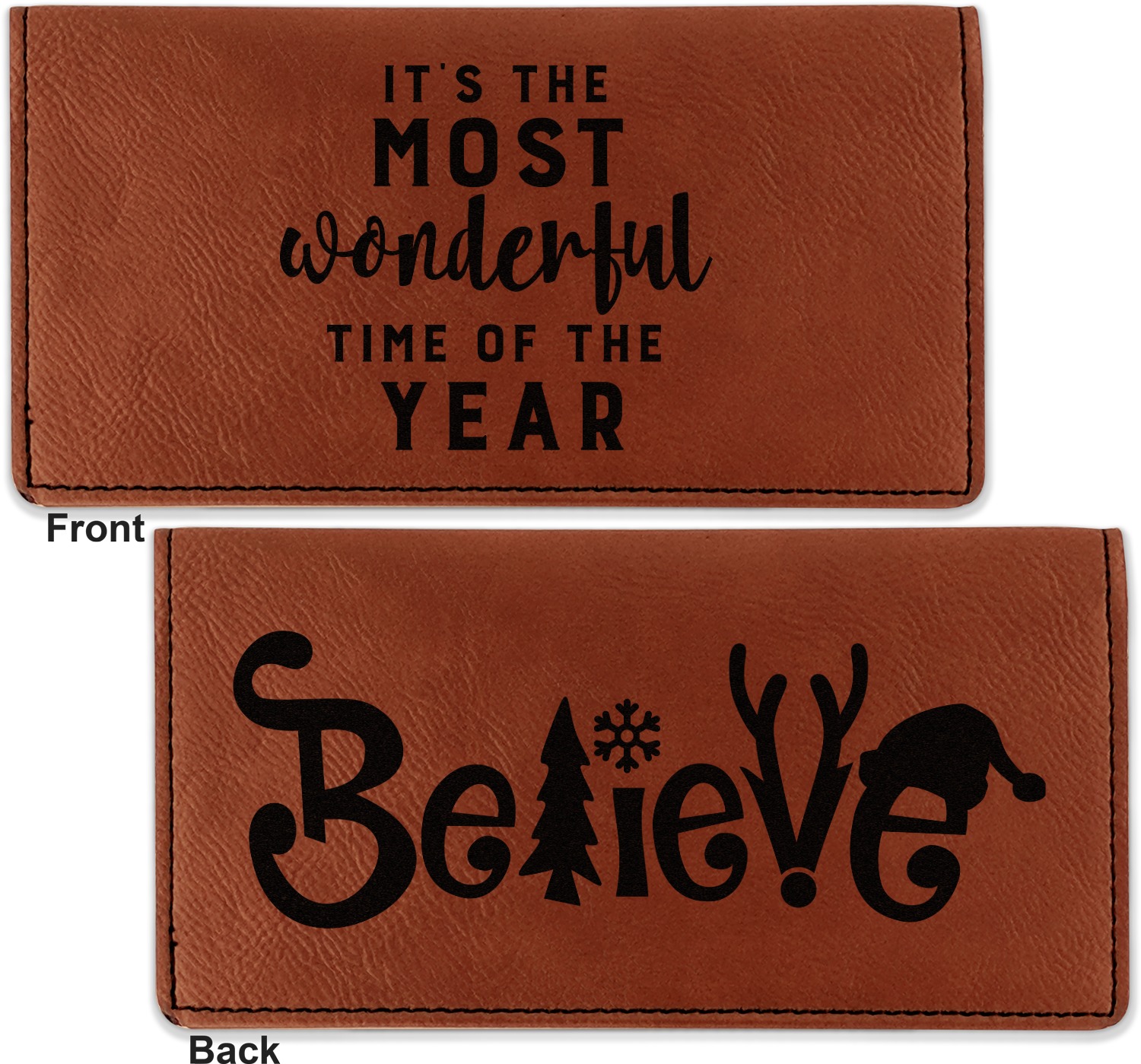 Go into our design center to start personalizing. Your checkbook cover will be laser engraved, making the graphic or text a black color. Choose a fun saying, monogram, or font to go on your checkbook cover. You have the opportunity to do it double or single sided.