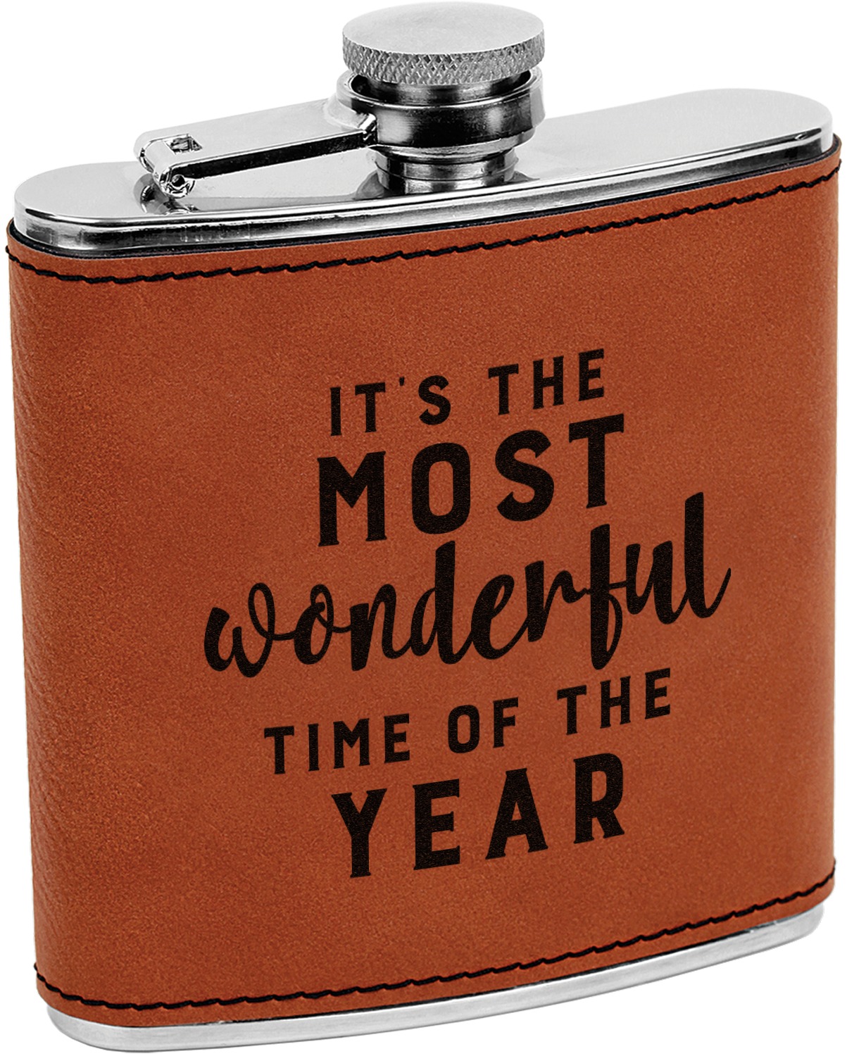 Sip your beverage in a classy fashion with one of our stainless steel flasks! These flasks are sold with an engraved, leatherette wrap that you customize! The refined look of these hip flasks make them the perfect gift for a loved one!