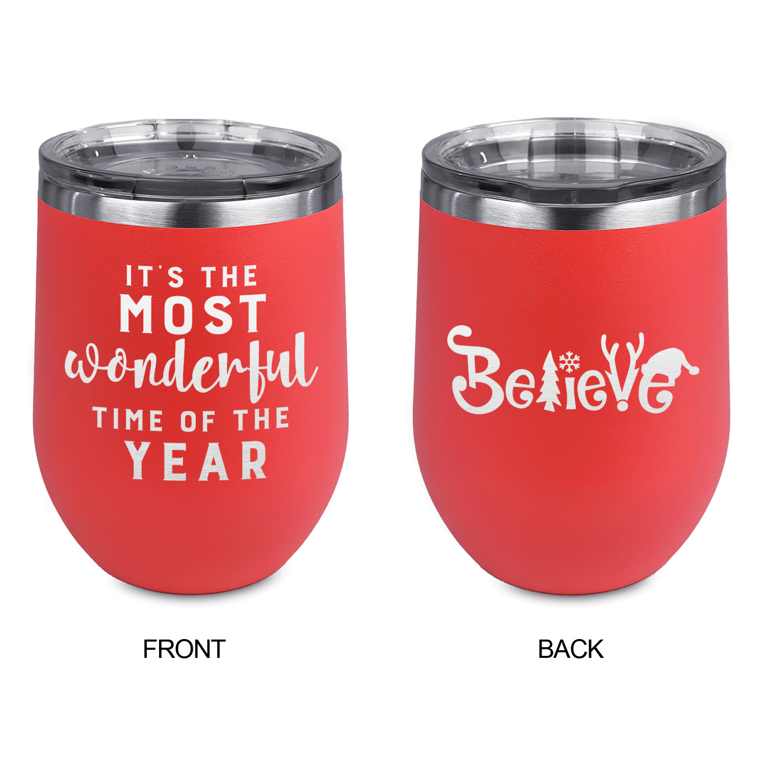 Design your wine tumbler with a cool graphic or quote. Even put your initials or monogram! These cups are laser engraved, which looks extra sharp on the metal tumbler.