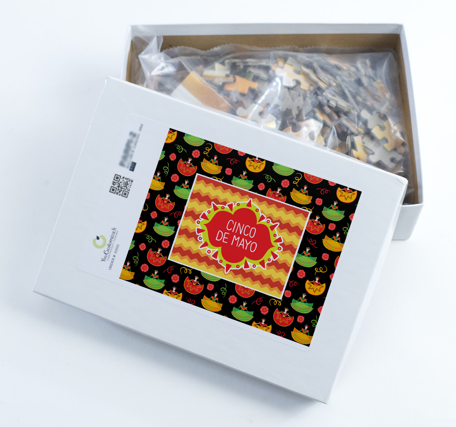You can also upload your logo or art that you or your kids drew. To create more challenging jigsaw puzzles, you can create a pattern from with your logo or artwork. You can also add other elements such as text or personalization.