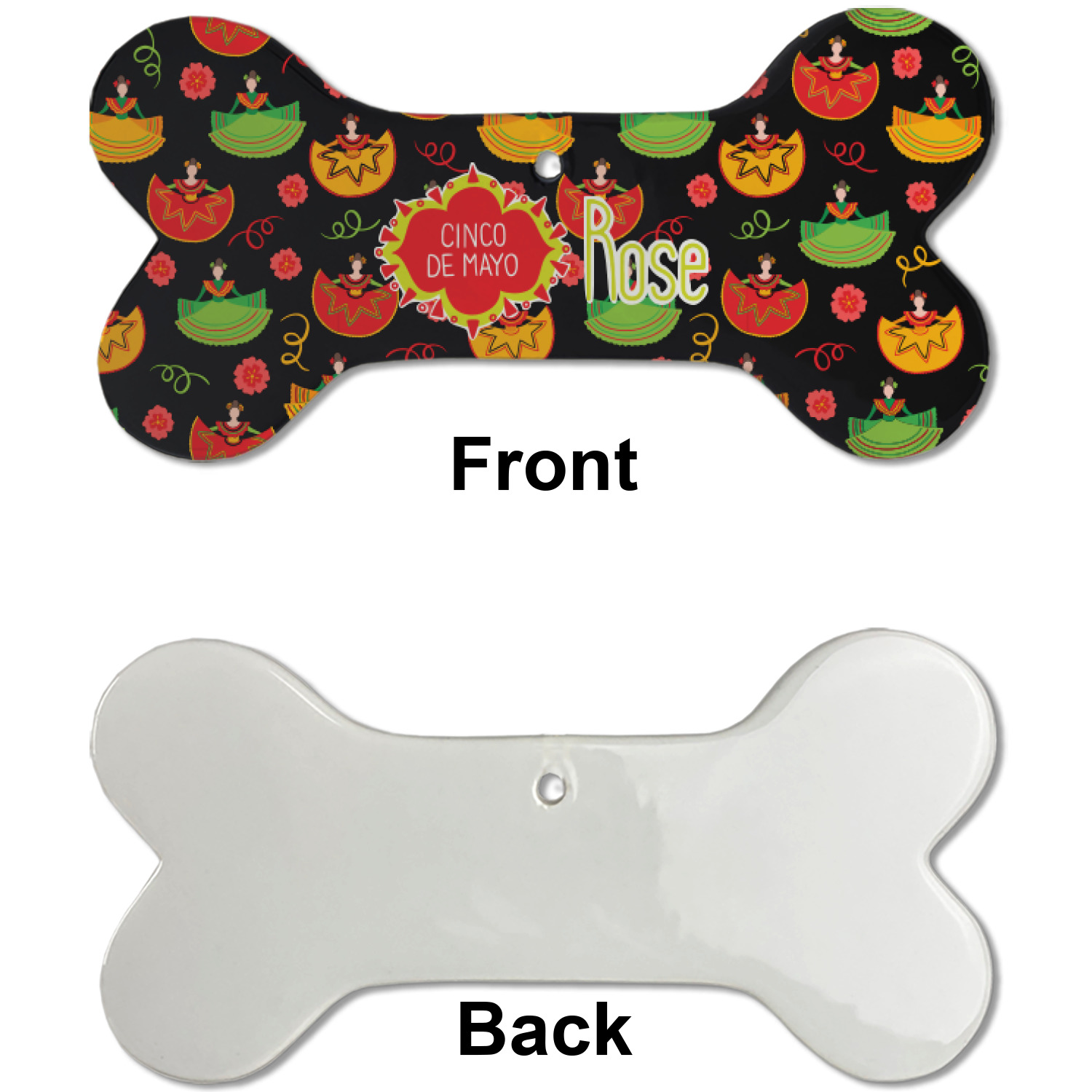 Our dog Christmas ornaments are a ceramic material with a bone-shaped structure hung horizontally. We offer two printing styles to personalize your furry friend's ornament! Choose a one-sided printing, perfect for wall decor, memorial accessory, or doghouse nameplate! Create a double-sided ornament perfect for adorning the Christmas tree. Each dog bone ornament is approximately 4.75" x 2.25" and is printed here in the USA.