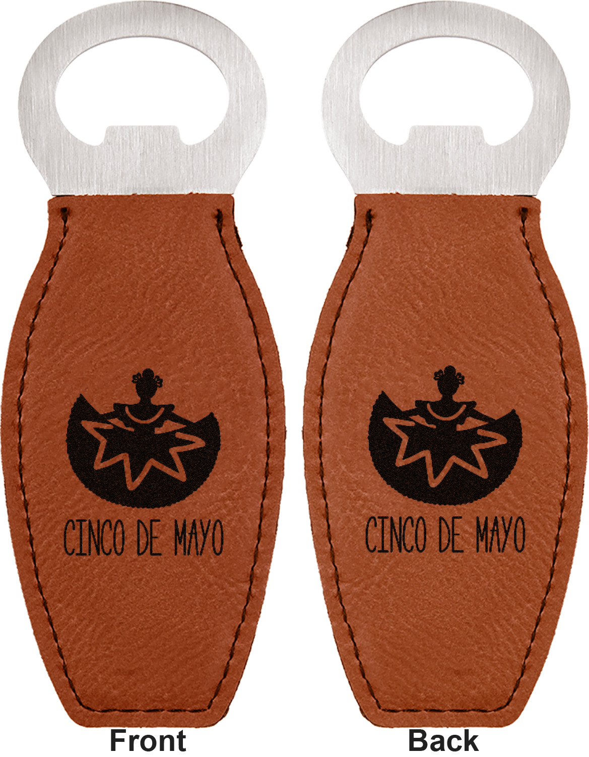 Built from stainless steel, these custom bottle openers are wrapped in a cognac-colored leatherette. Sharp, black stitching lines the edges for extra durability and a finished touch. Your personalization is laser-engraved onto the surface of this leatherette, leaving behind a crisp, black coloration. At 4.6 by 1.8 inches, this beer bottle opener gives you much of leverage when trying to open a stubborn bottle. On the opposite end of the opener, you'll find a magnet that you can use to display your new, unique bottle opener!