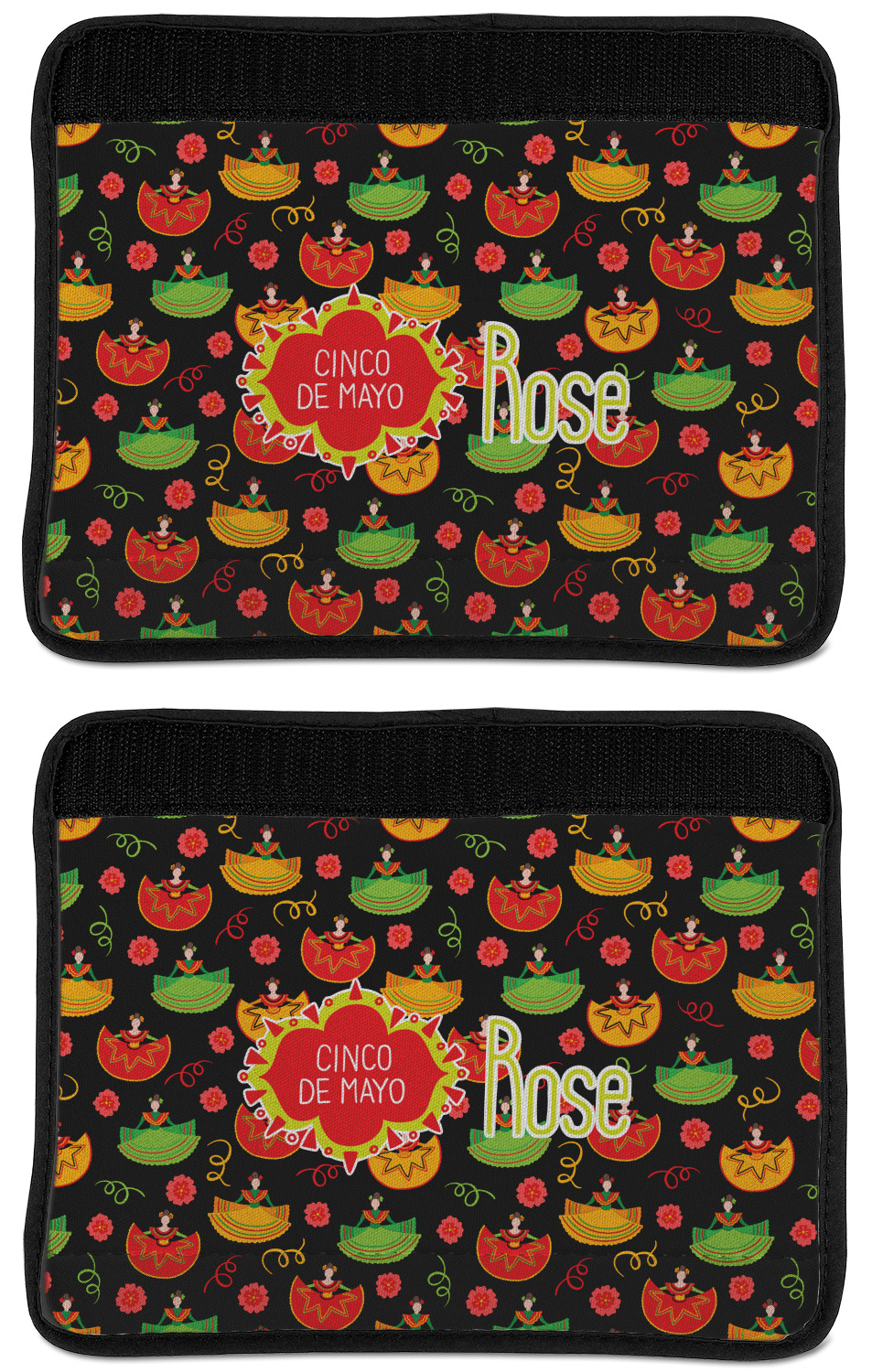 Made from neoprene, our seat belt strap covers wrap around the belt itself and have a Velcro tab for easy attachment and closure. The belt's edges are trimmed with a black polyester for a secure finish. Each cover is 9.5 by 7 inches when open and 9.5 by 2.5 inches when closed. We print your personalized design on the face of the seat belt pad.
