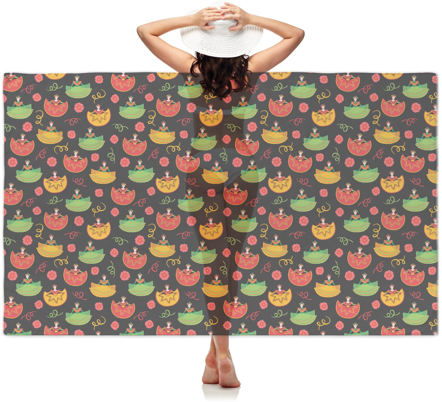 This sarong is 42" x 70" of personalized beauty. It is made of a soft polyester for comfort when against your skin. The material is sheer, so it serves well as a swimsuit cover-up or a shawl. There are so many uses for this wonderful product that you will be sure to find when it is in your hands.
