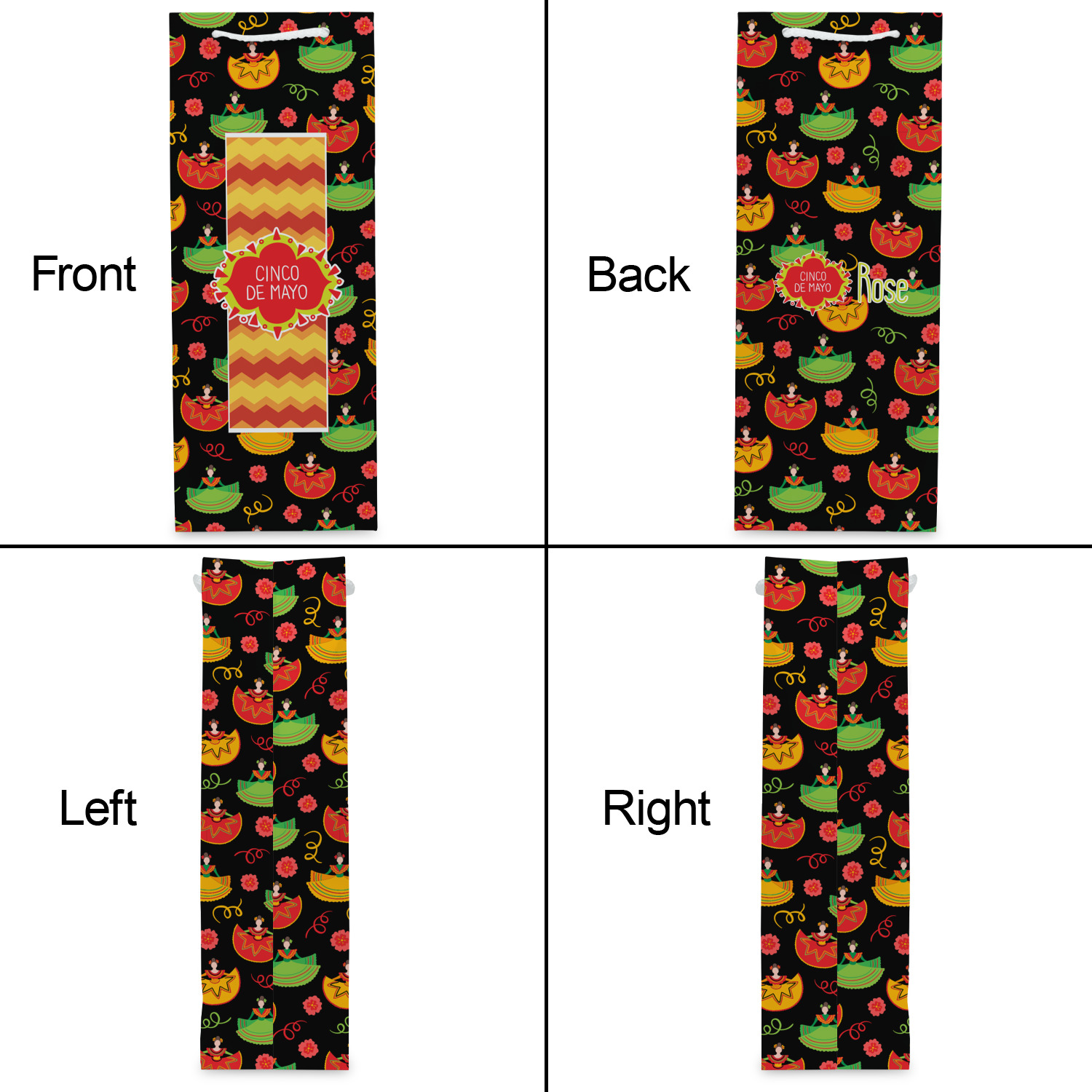 Our wine bags are printed on premium paper. The bags are then cut, scored and folded. The handles and cardstock base it attached. These custom wine bags are printed and made in the USA.