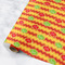 Our rolls are printed on premium paper in in a satin or matte finish. The wrapping paper is scratch & water resistant; it is flexible and will resist cracking when folded or creased. We use 100% water based inks for the wrapping paper rolls.