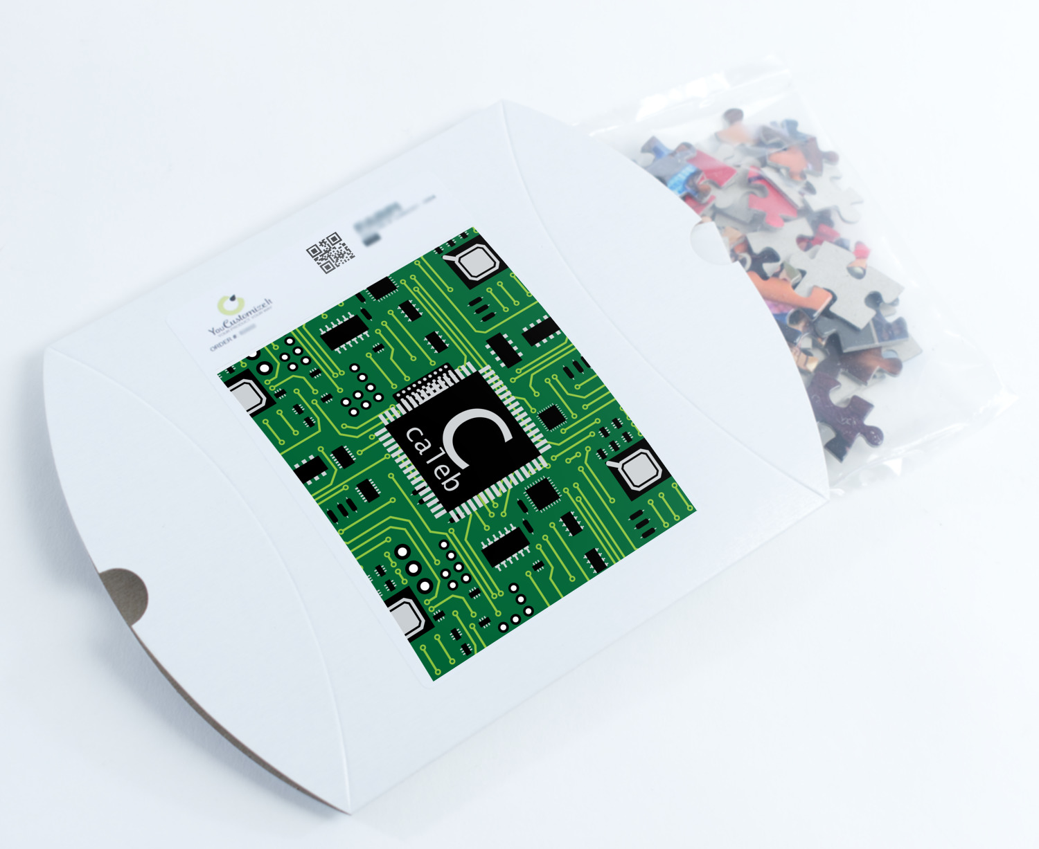 You can also upload your logo or art that you or your kids drew. To create more challenging jigsaw puzzles, you can create a pattern from with your logo or artwork. You can also add other elements such as text or personalization.