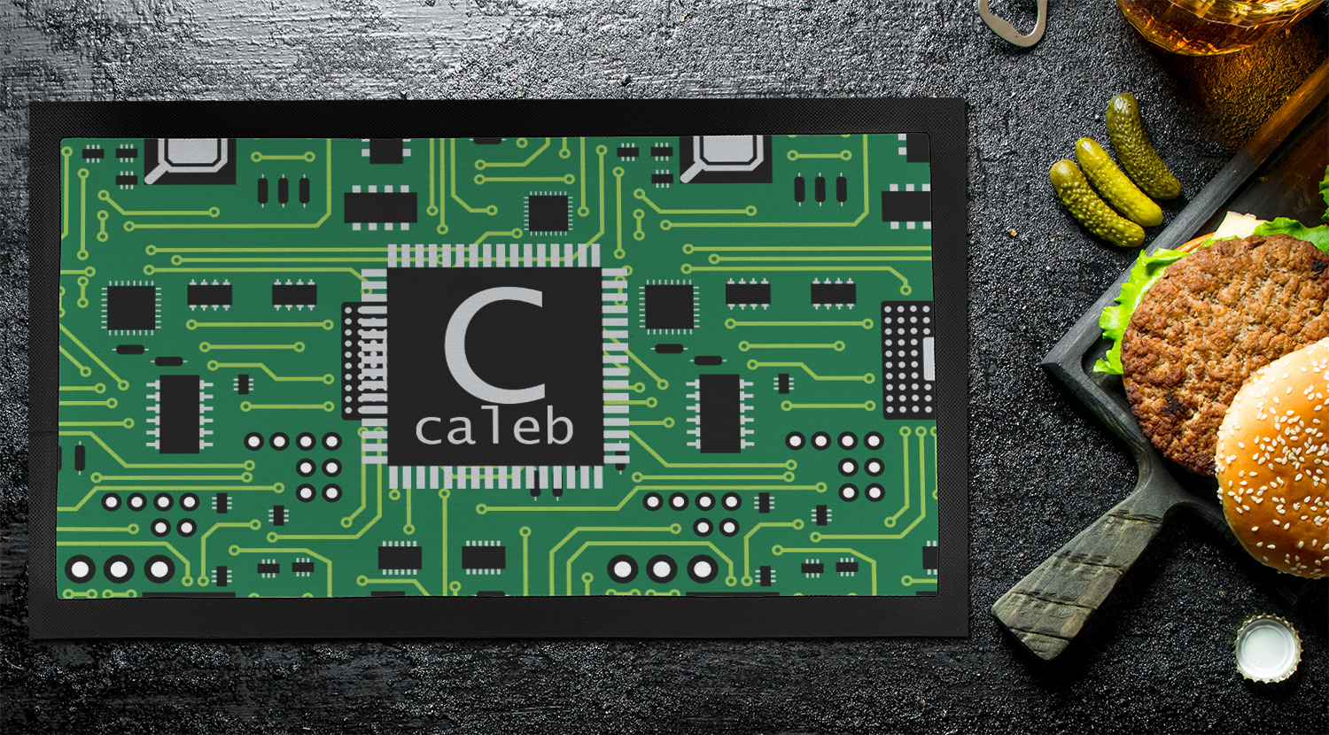 This circuit board design is perfect for the geek in your life. It was designed for the geeks at our workplace who complained that there we did not have any designs for them. Now Caleb sports around a trifold wallet and a clip board in this design!