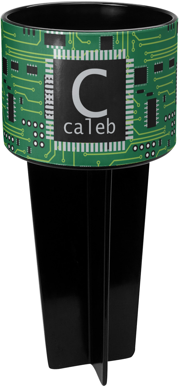 This cup holder has a large stake at its bottom that anchors it to the sand or ground below, while the cup holder rests above the stake. The entire drink holder is made of durable plastic and displays your customization around the cup holder portion. We sell these personalized beach spikers in two different colors: black and white.