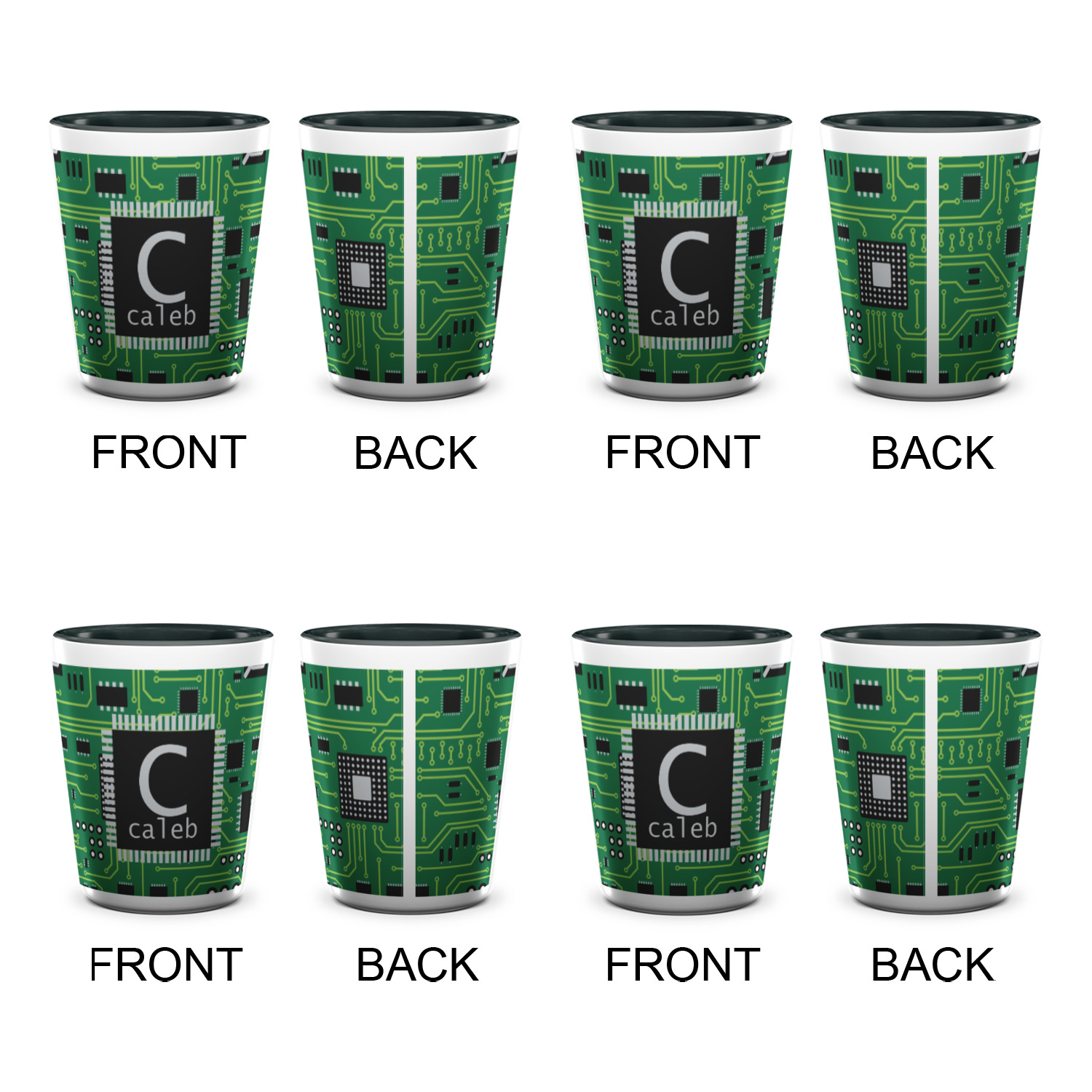 Made from ceramic these shot glasses are printed in full color with the design of your choice. These are a standard 1.5oz size and stand 2.25" tall. Available in a full white ceramic or a two-tone with a black color inside the shot glass. Buy a single or a set of 4, all of which can be designed separately to get you just what you want and need.
